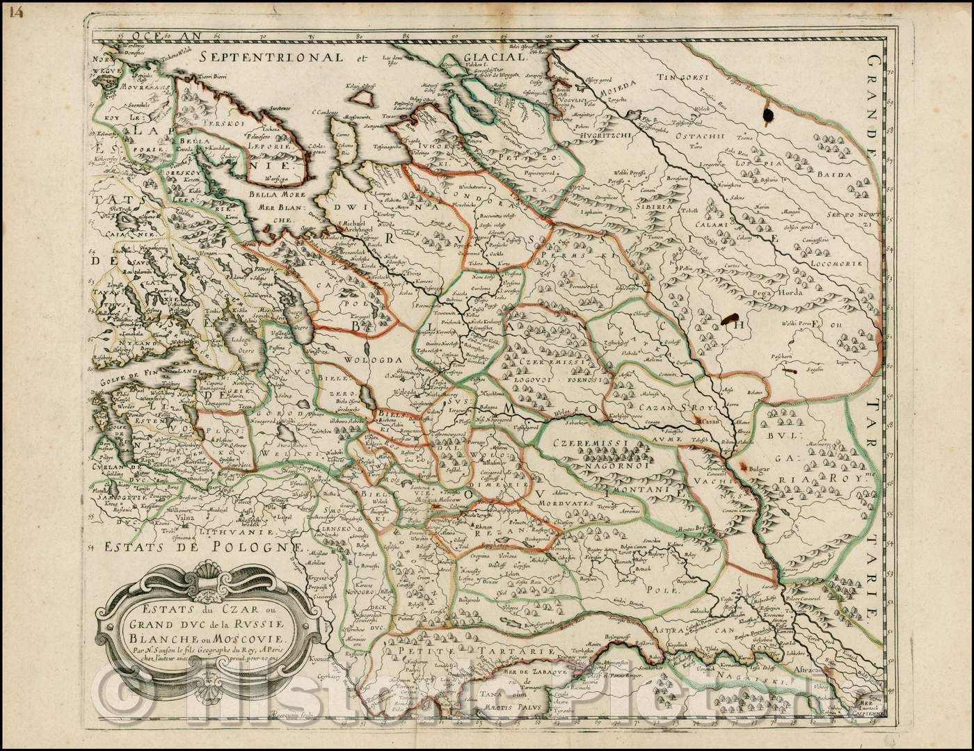 Estats du Czar ou Grand duc de la Russie Blanche / Sanson's Map of Russia, Poland and Ukraine,Gulf of Finland to Petite Tartary, 1648