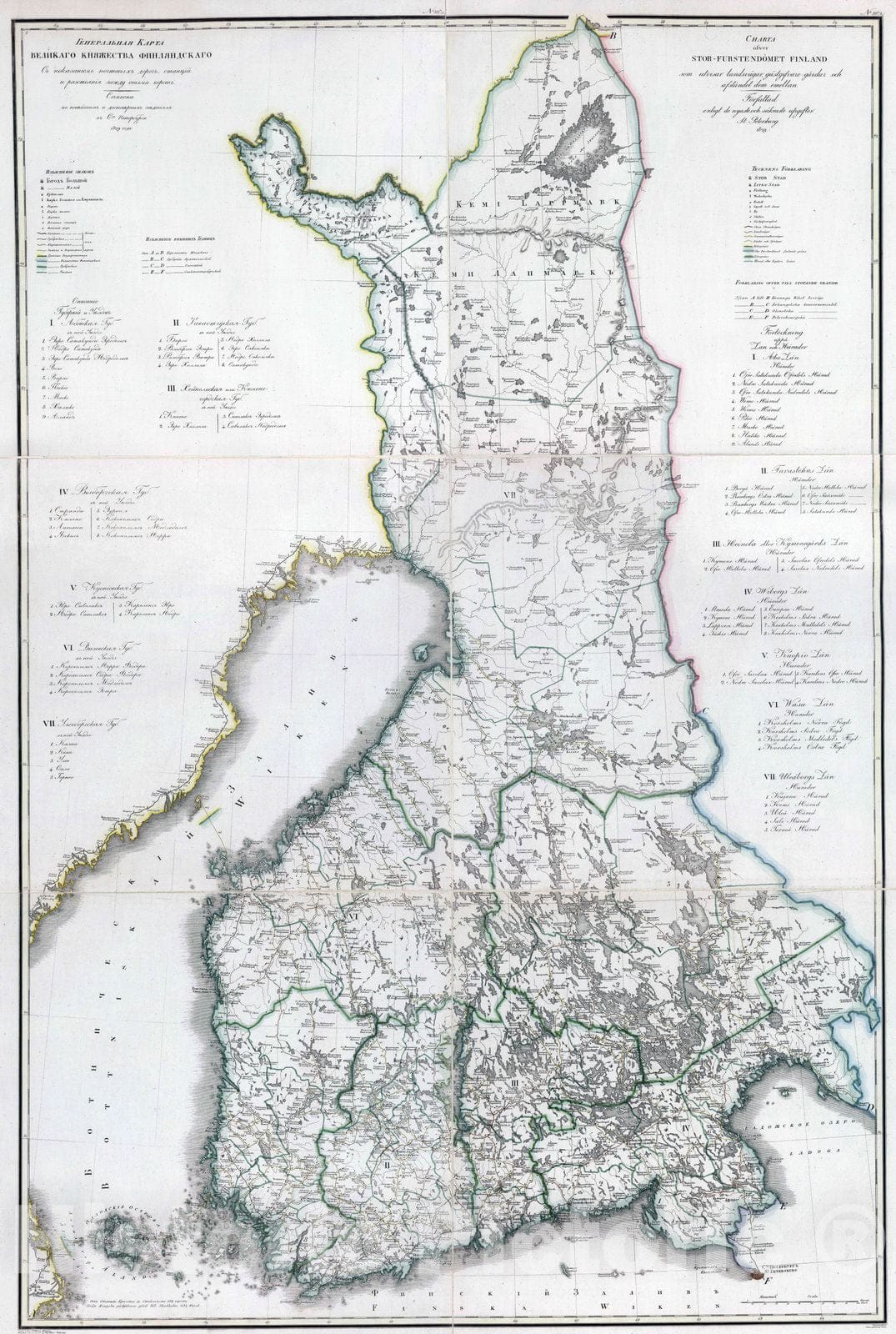 Finland, 1829 Generalnaia karta Velikago Kniazhestva Finliandskago , Vintage Wall Art