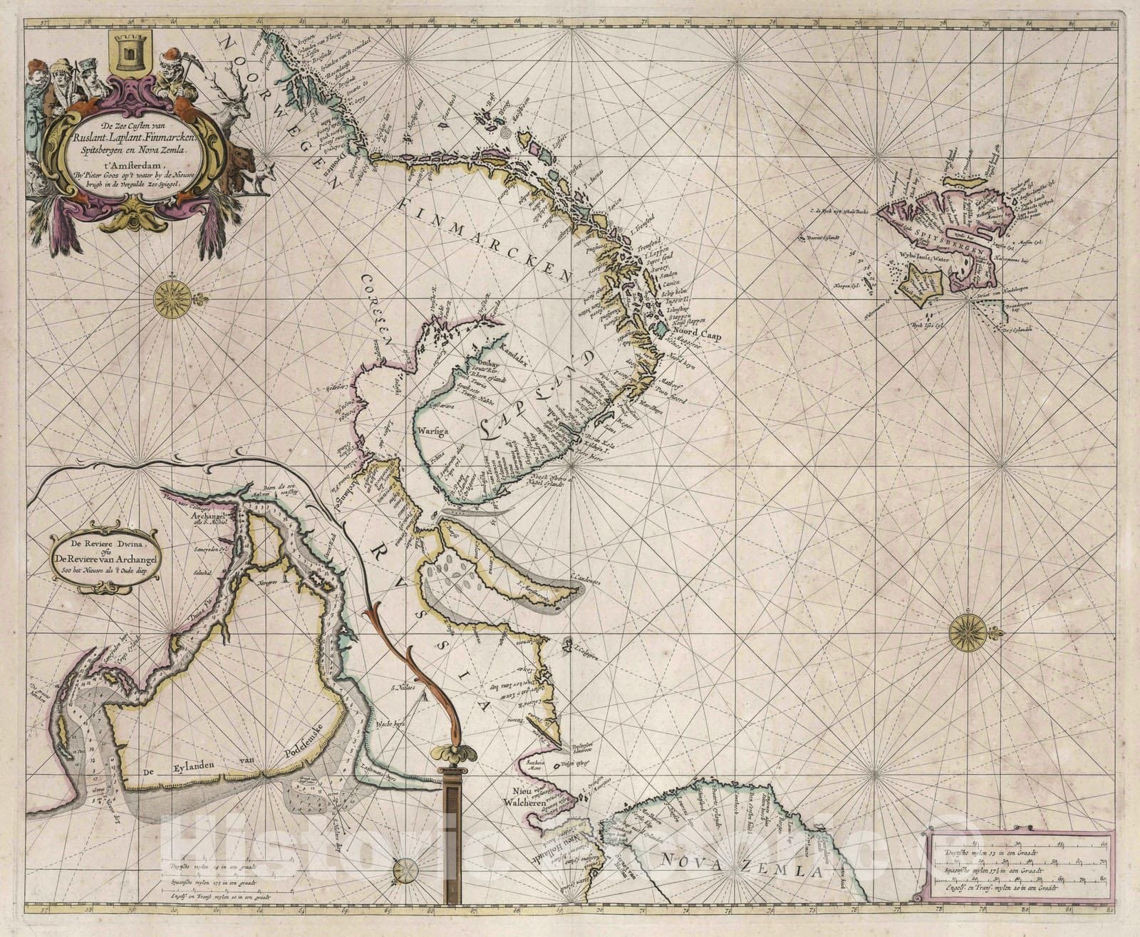 Historic Map : Finland, Dwina Bay (Russia) 1667 De Zee Custen van Ruslant, Laplant, Finmarcken, Spitsbergen en Nova Zemla. , Vintage Wall Art