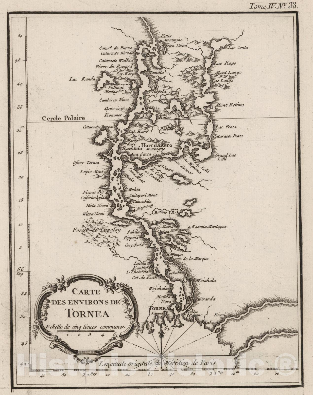 Historic Map : Finland, , Europe 1764 Carte des Environs de Tornea , Vintage Wall Art