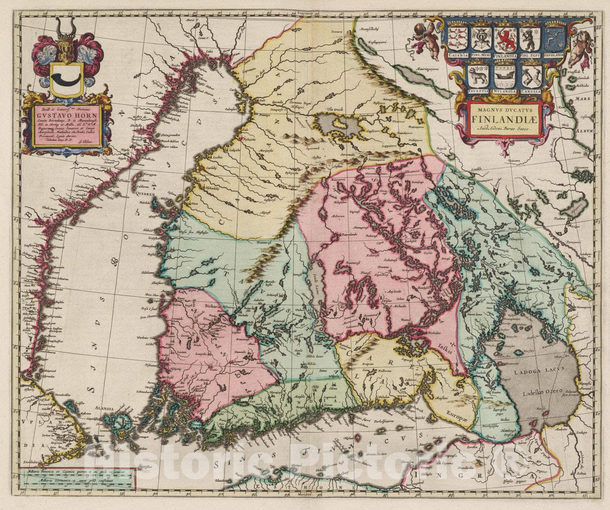 • .Historic Map : Finland, Magnvs Dvcatvs Finlandiae, 1665 Atlas , Vintage Wall Art
