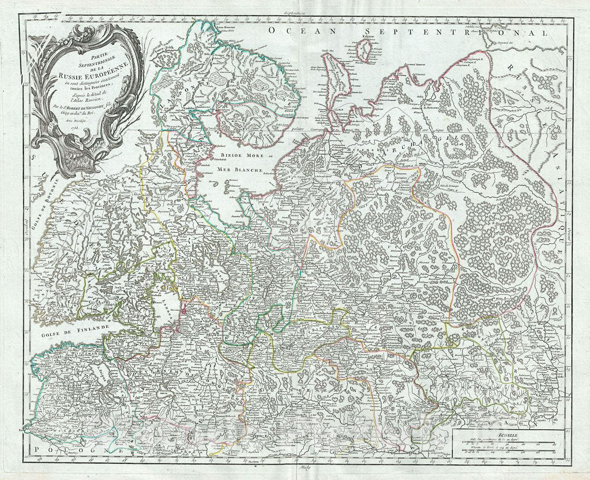 Historic Map : Vaugondy Map of Northern European Russia (Russia, Latvia, Estonia, Finland), 1757, Vintage Wall Art