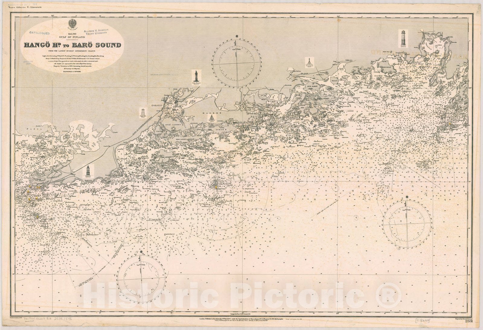 Map : Finland 1898, Baltic, Gulf of Finland, Hango? Hd. to Baro? Sound , Antique Vintage Reproduction