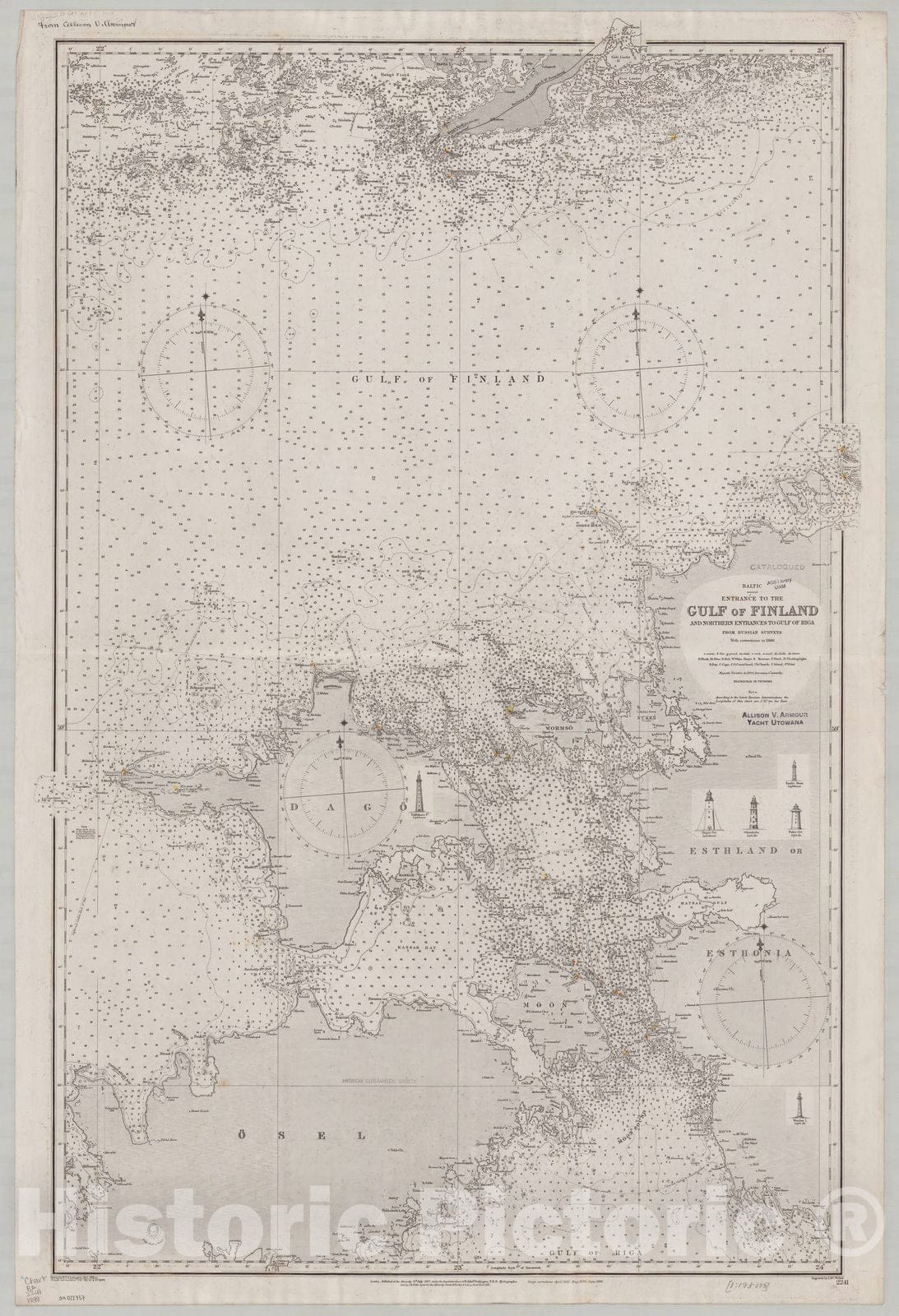 Map : Gulf of Finland 1898, Baltic, entrance to the Gulf of Finland an northern entrances to Gulf of Riga , Antique Vintage Reproduction