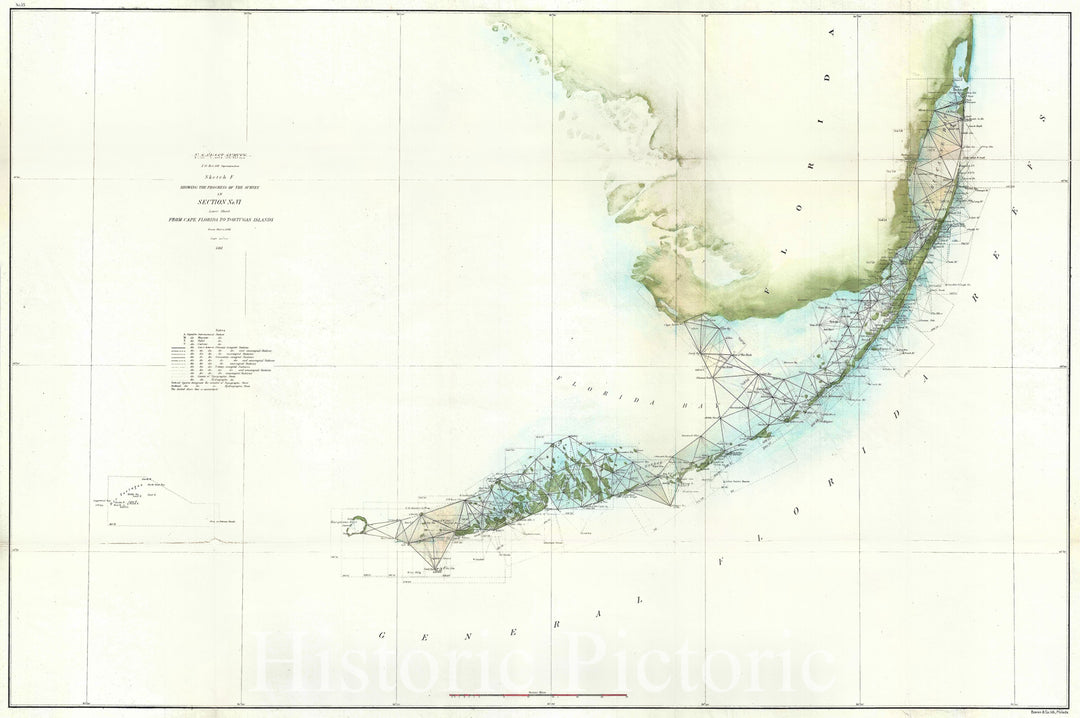 Historic Map : U.S. Coast Survey Triangulation Map of The Florida Keys, 1859, Vintage Wall Art