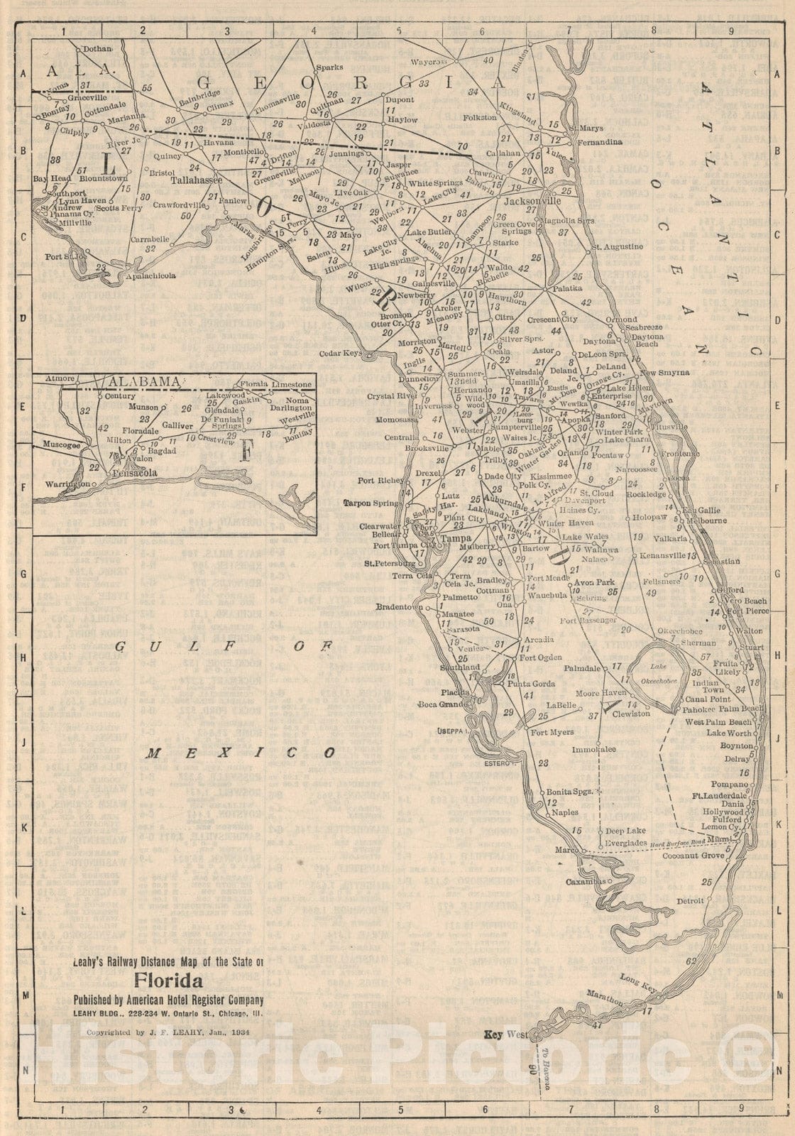 (Continuation) Railway Distance Map of the State of Florida, 1934