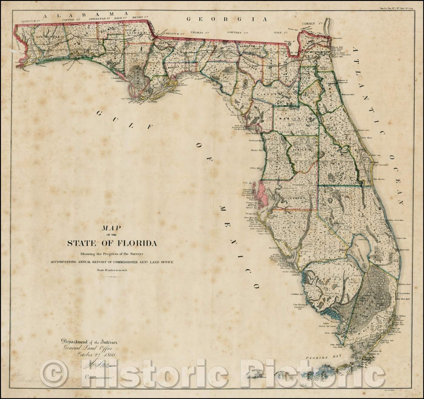 Historic Map - Map of the State of Florida Showing the Progress of the Surveys Accompanying Annual Report of the Commissioner Genl. Land Office, 1866 v2