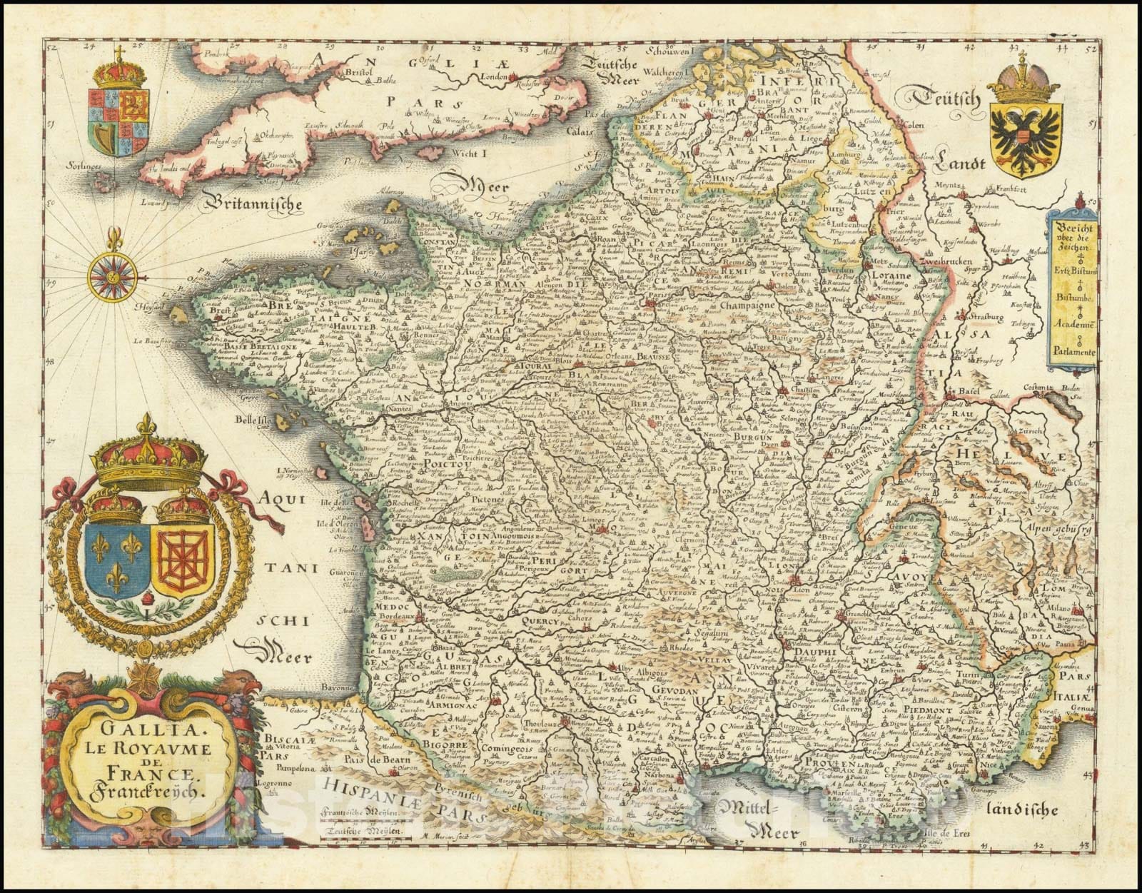 Historic Map : Gallia. Le Royaume De France, 1636 v1, Vintage Wall Art