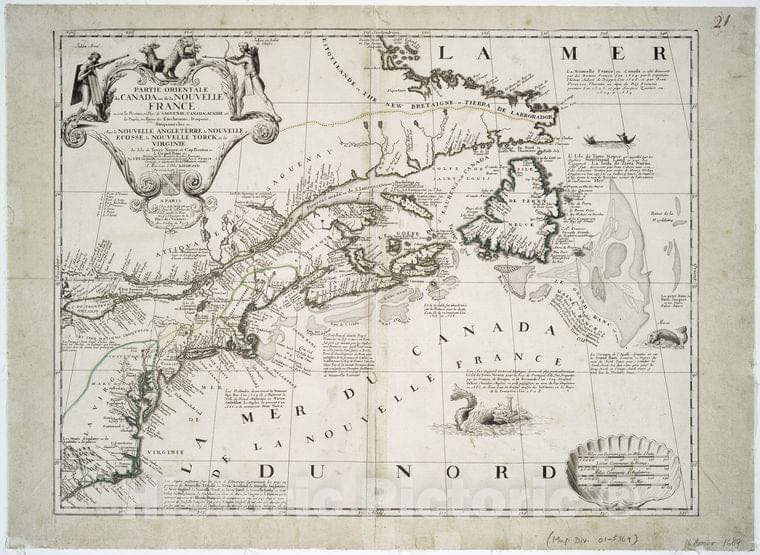Historic 1689 Map - Partie Orientale Du Canada Ou De La Nouvelle France : Ou Sont Le - Canada - North Americamaps Of North America. - Canada - Vintage Wall Art