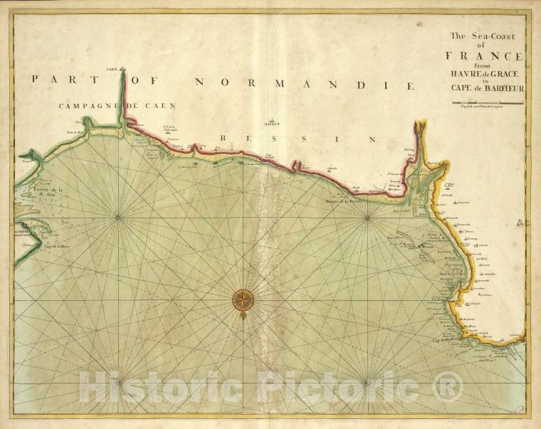 Historic 1702 Map - The Sea-Coast Of France From Havre De Grace To Cape De Barfleur