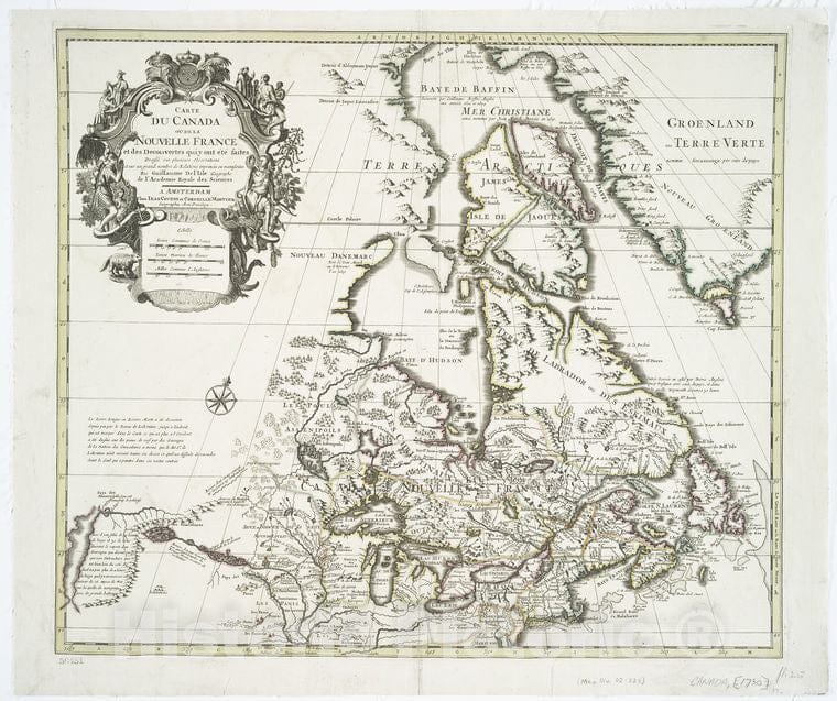 Historic 1730 Map - Carte Du Canada Ou De La Nouvelle France Et Des Decouvertes Qui - Vintage Wall Art