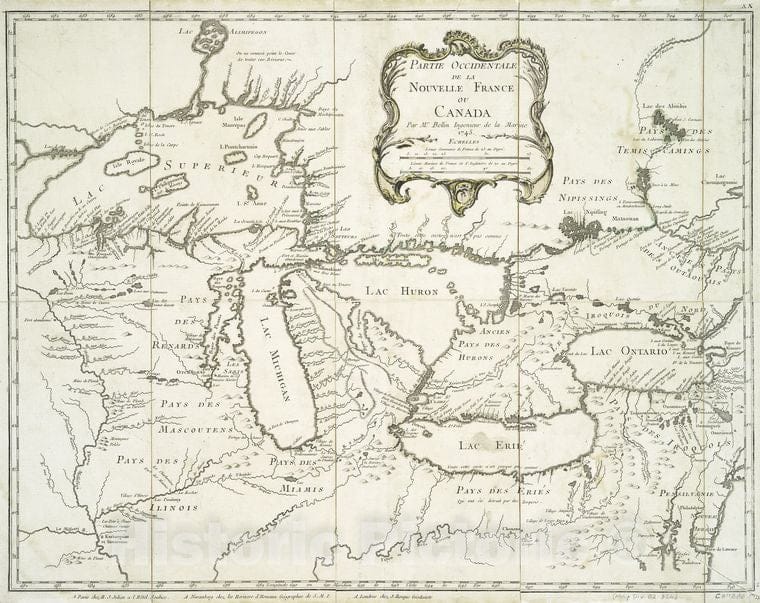 Historic 1745 Map - Partie Occidentale De La Nouvelle France Ou Canada