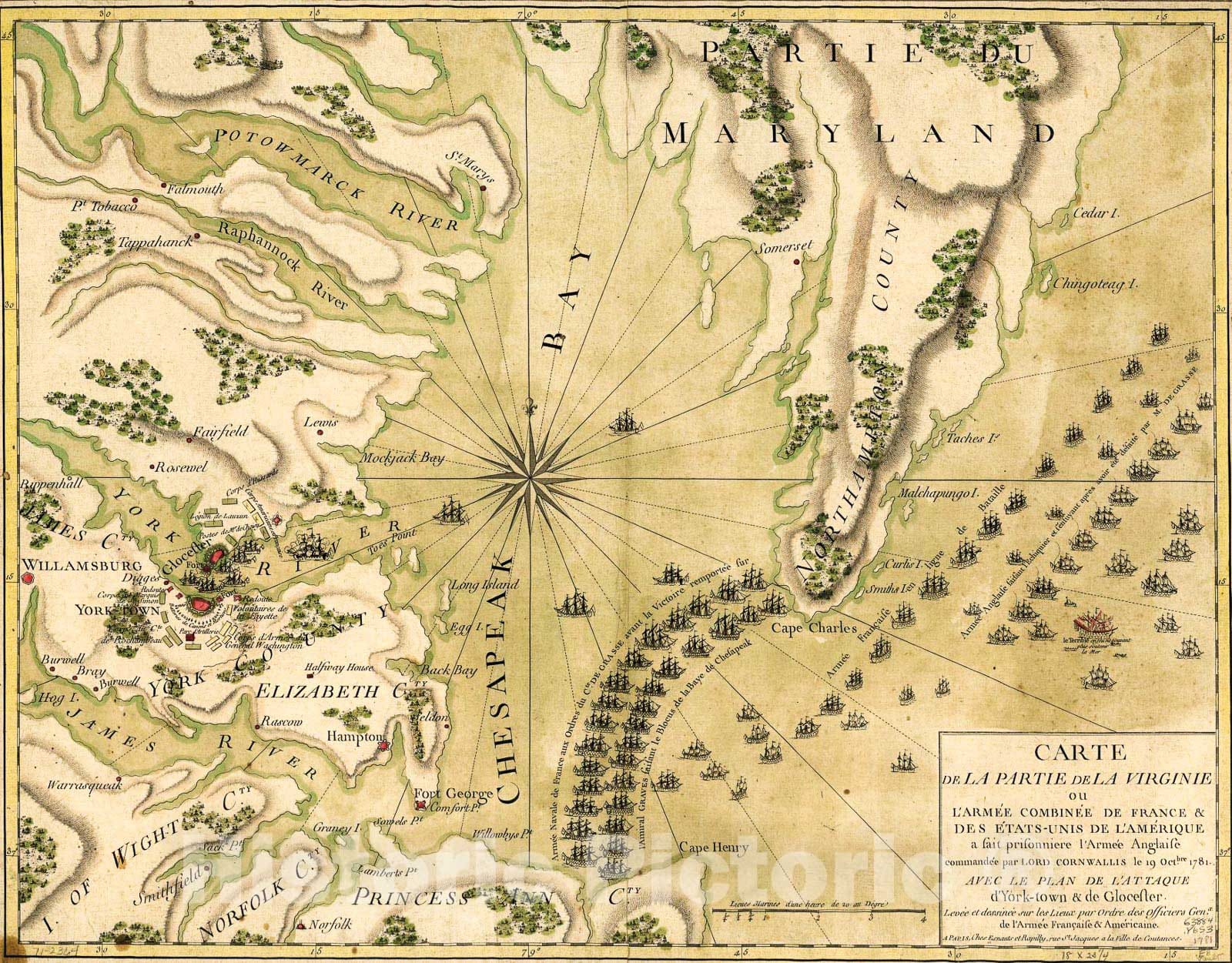 Historic 1781 Map - Carte de la Partie de la Virginie ou l'armée combinée de France & des États-UNIS de l'Amérique a fait prisonnière