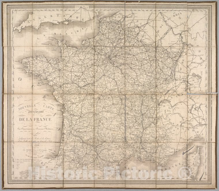 Historic 1826 Map - Nouvelle Carte Itineraire De La France Par Departements Et Divisions Militaires .Of Europe - Vintage Wall Art