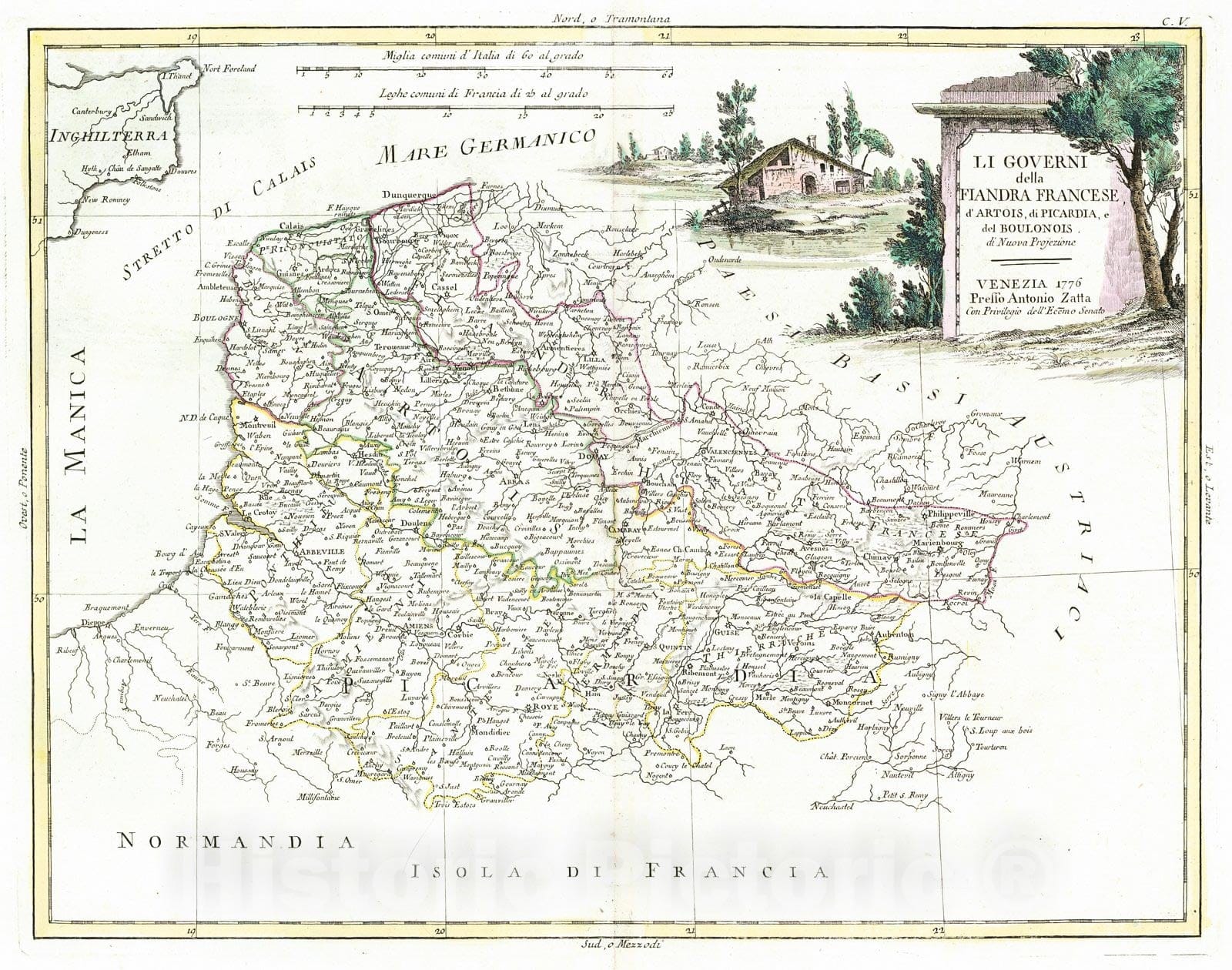 Historic Map : 1779 Li Governi della Fiandra Francese, d'Artois, di Picardia, e del Boulonois : Vintage Wall Art