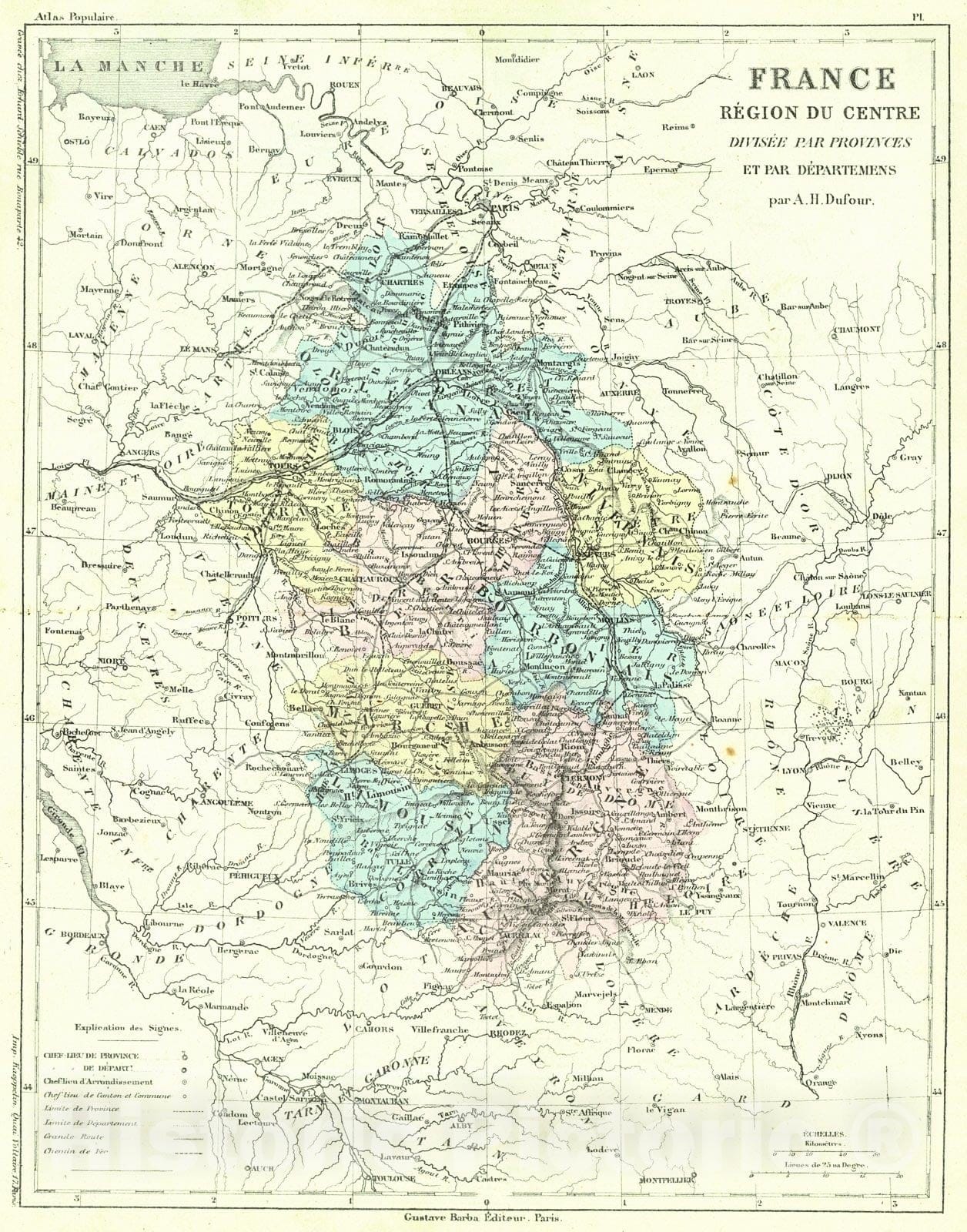 Historic Map : 1856 France Region du Centre Divisee par Provinces et par Departemens : Vintage Wall Art