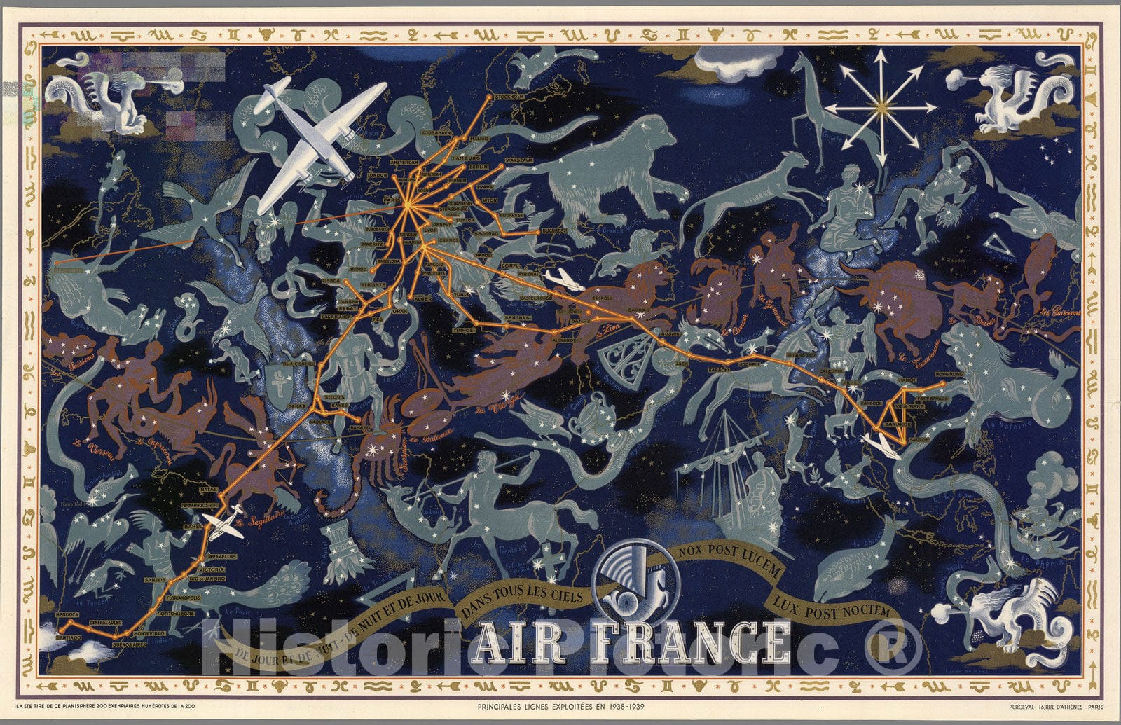 Historic Map : Air France : De nuit et de jour dans tous les ciels, 1939, Vintage Wall Decor