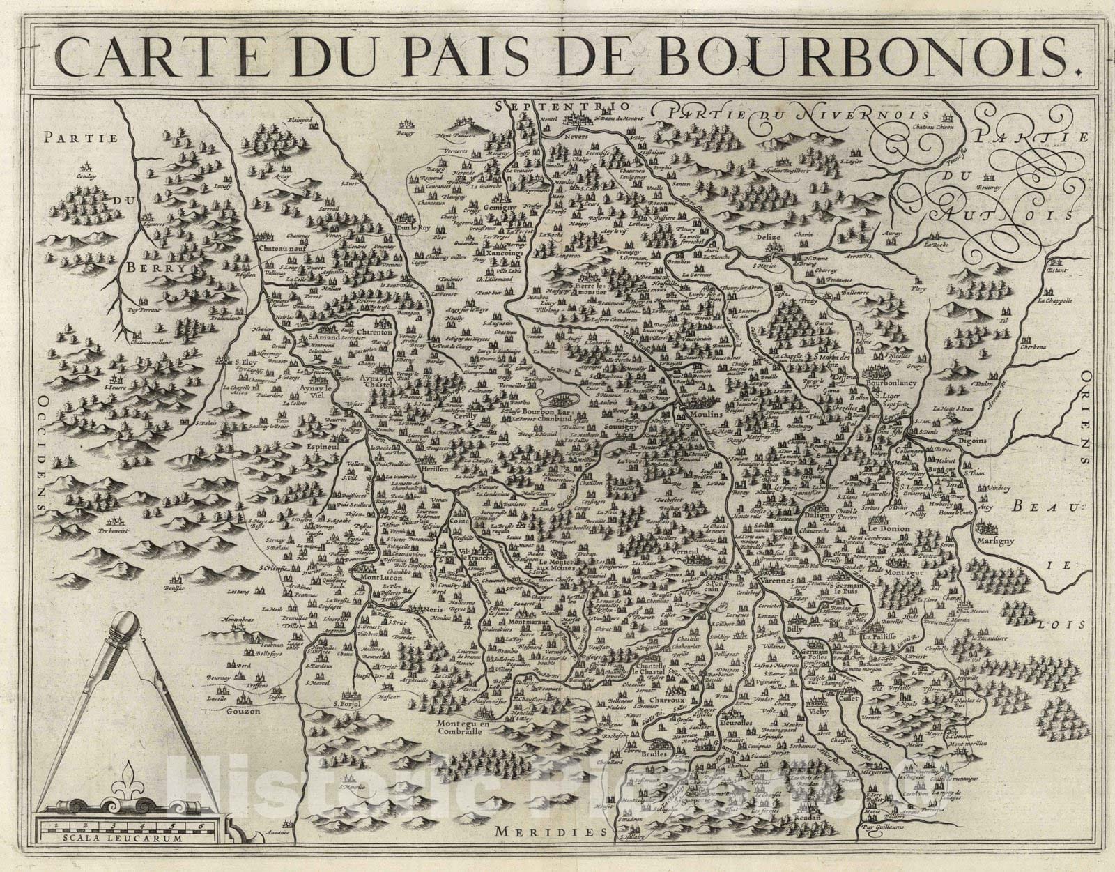 • Historic Map : Bourbonnais , France 1632 Carte du Pais de Bourbonois. , Vintage Wall Art