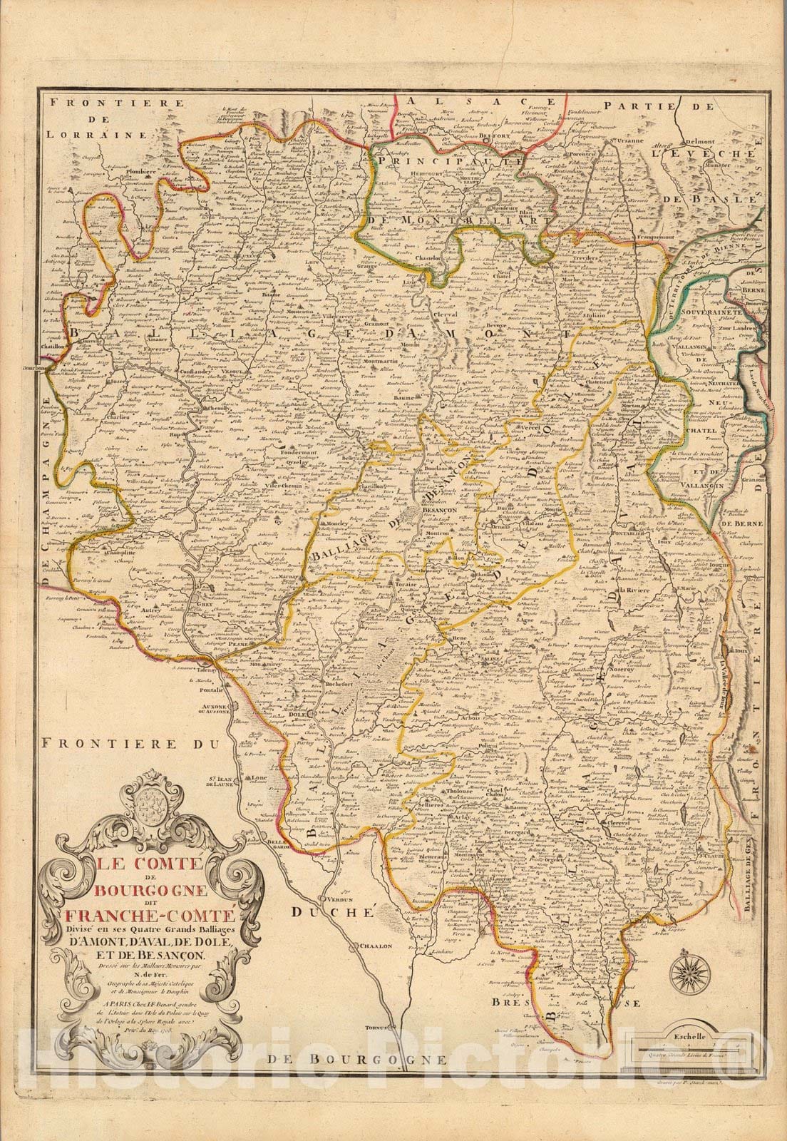 Historic Map : Bourgogne Region , FranceLe Comte de Bourgogne dit Franche-Comte 1708 , Vintage Wall Art