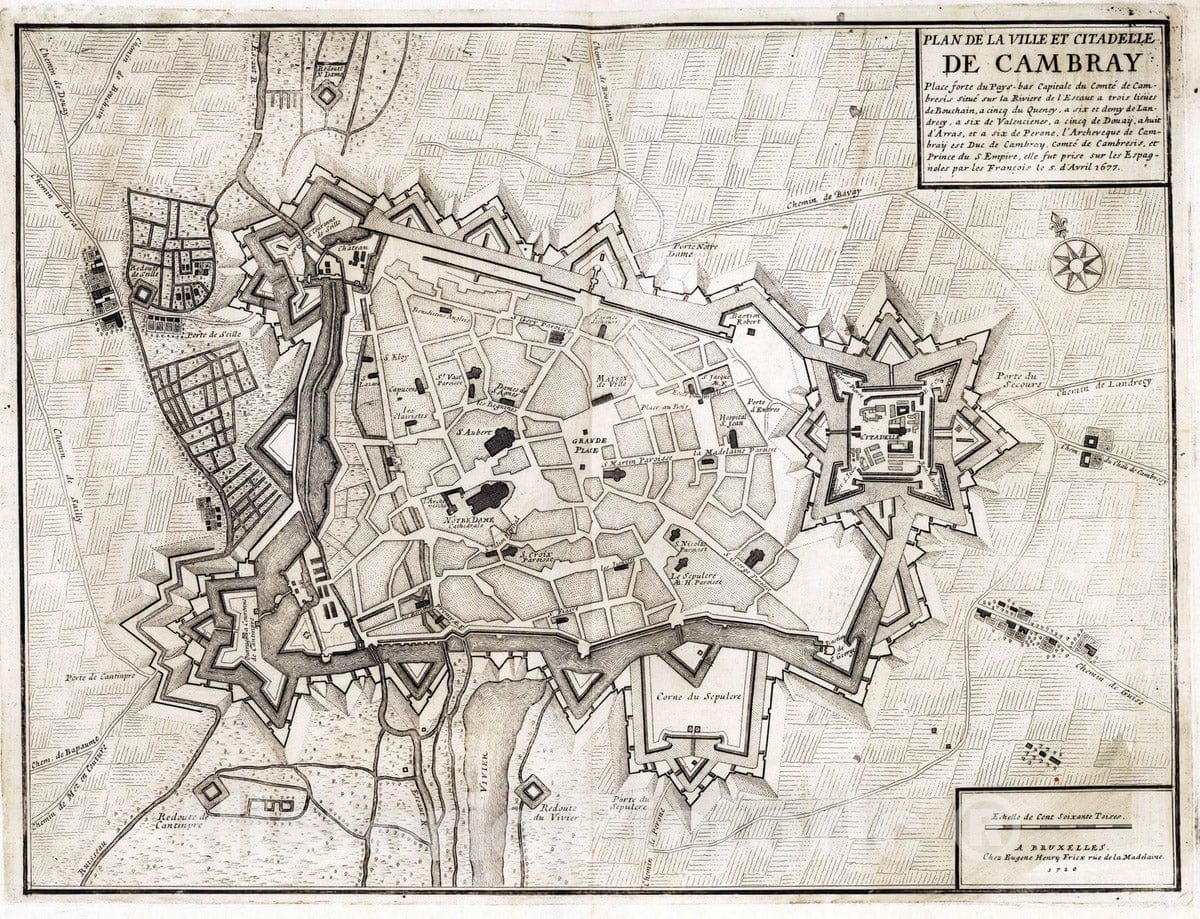 Cambrai , France, 1710 71. Plan de la Ville et Citadelle de Cambray (Cambrai), France. 1710. , Vintage Wall Art