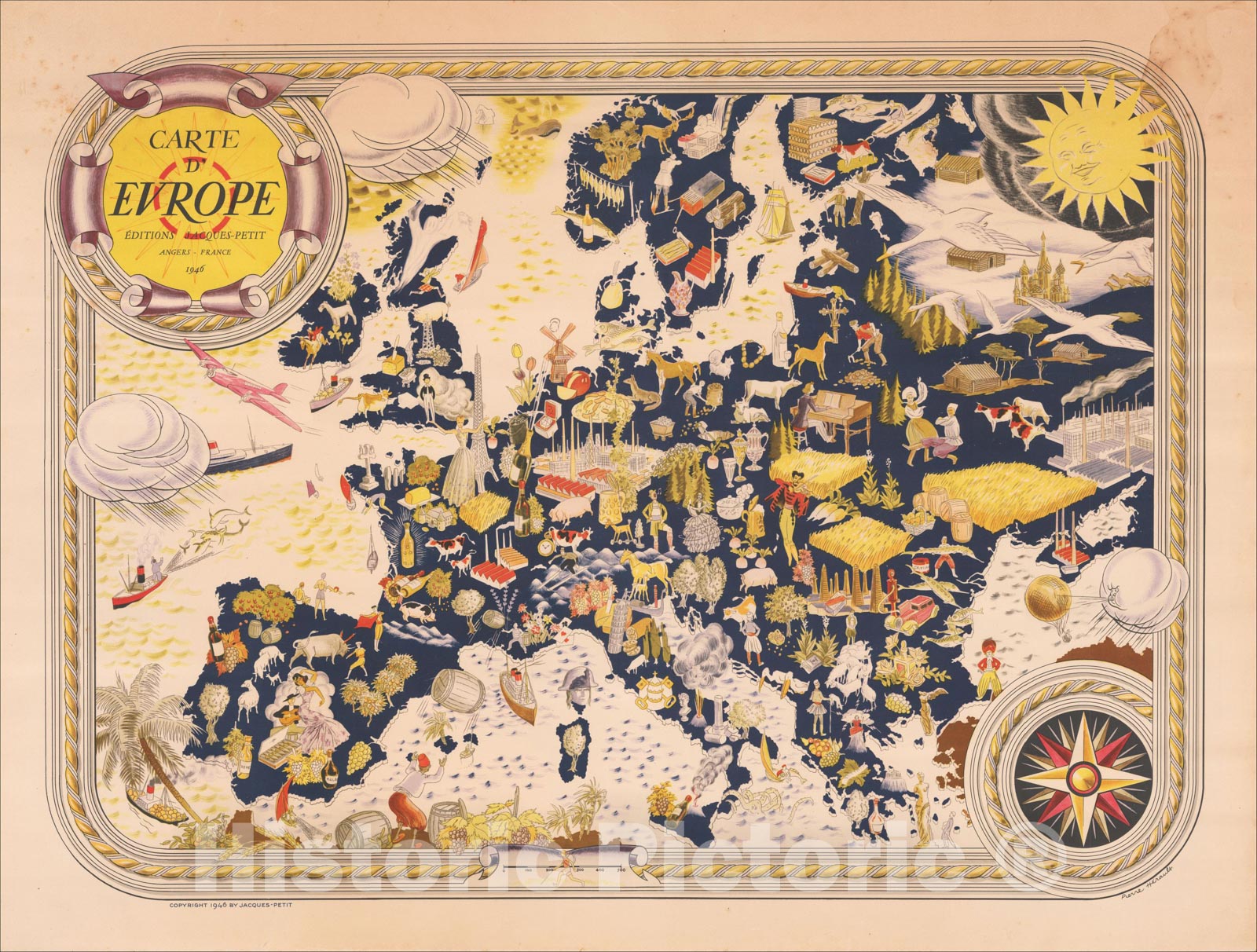 Carte D'Europe Editions Jacques-Petit Angers- France 1946, 1946, Pierre Herault