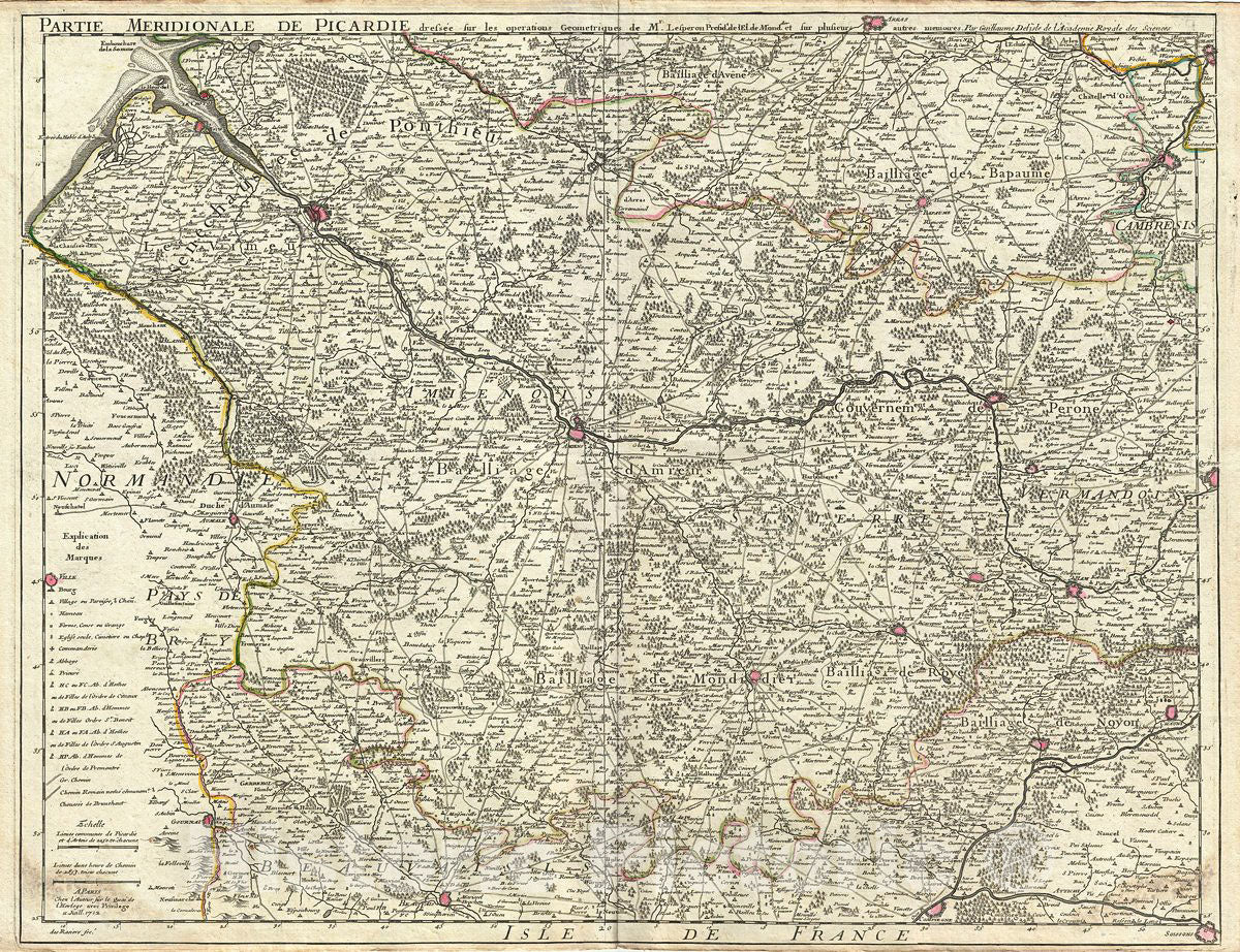 Historic Map : De L'Isle Map of The Southern Picardy, France (Maroilles Cheese Region), 1712, Vintage Wall Art