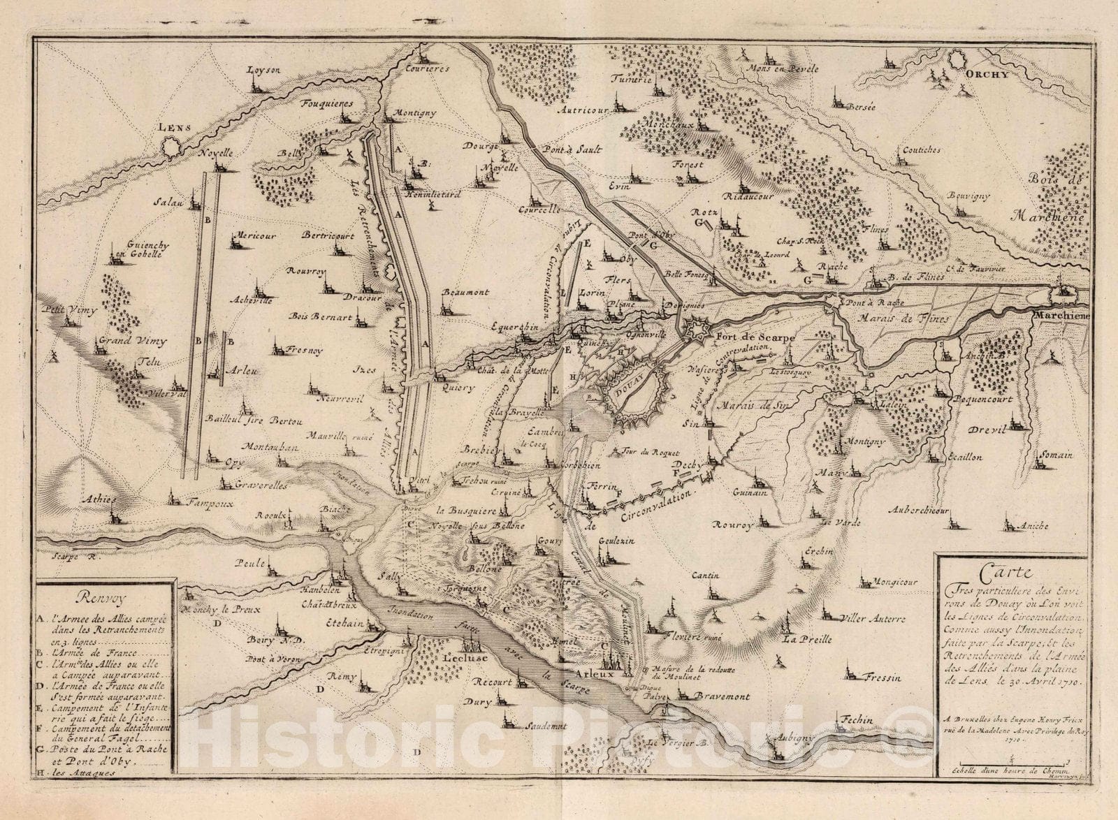• Historic Map : Douai , France,51. Le Siege Douay (Douai), France & ses environs. 1710. 1710 , Vintage Wall Art