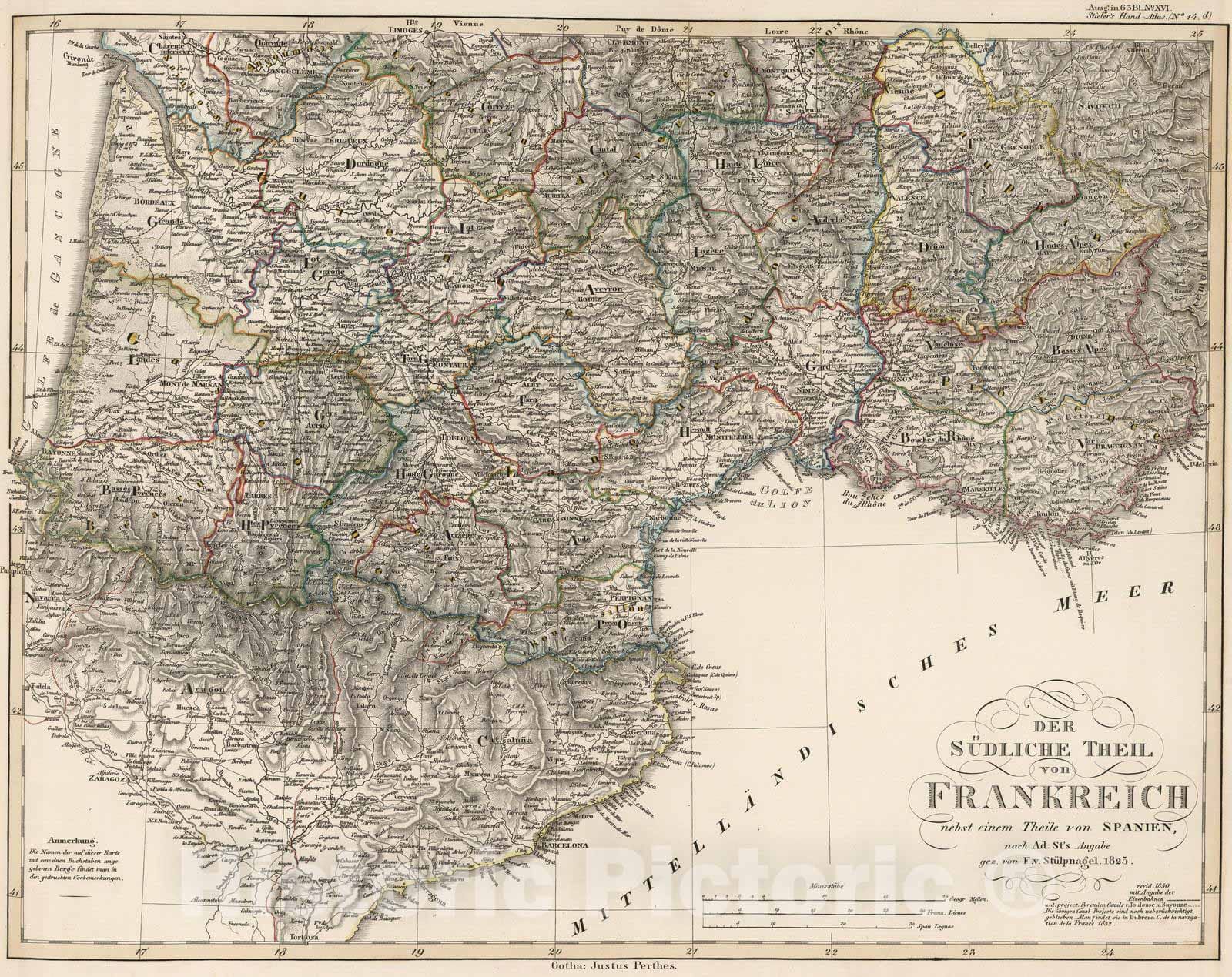 Historic Map : France, 1850 Der Sudliche Theil von Frankreich. (Southern France). , Vintage Wall Art