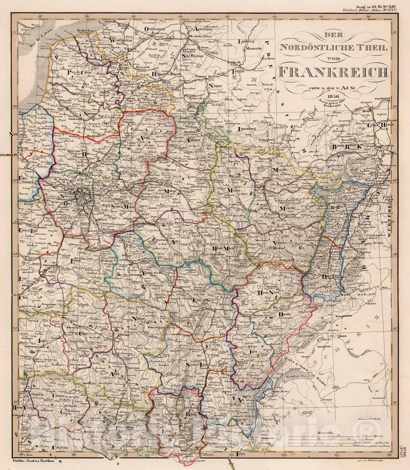 Historic Map : France, 1851 Der Nordostliche Theil von Frankreich. (Northeastern France). , Vintage Wall Art