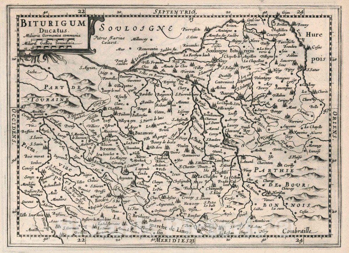 Historic Map : France, Biturigum Ducatus. Atlas sive Cosmographicae Meditationes de Fabrica Mundi et fabricati Figura, 1636 Atlas , Vintage Wall Art