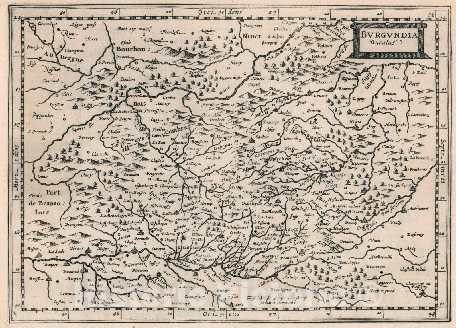 Historic Map : France, Burgundy, FranceBvrgvndia Ducatus 1636 , Vintage Wall Art