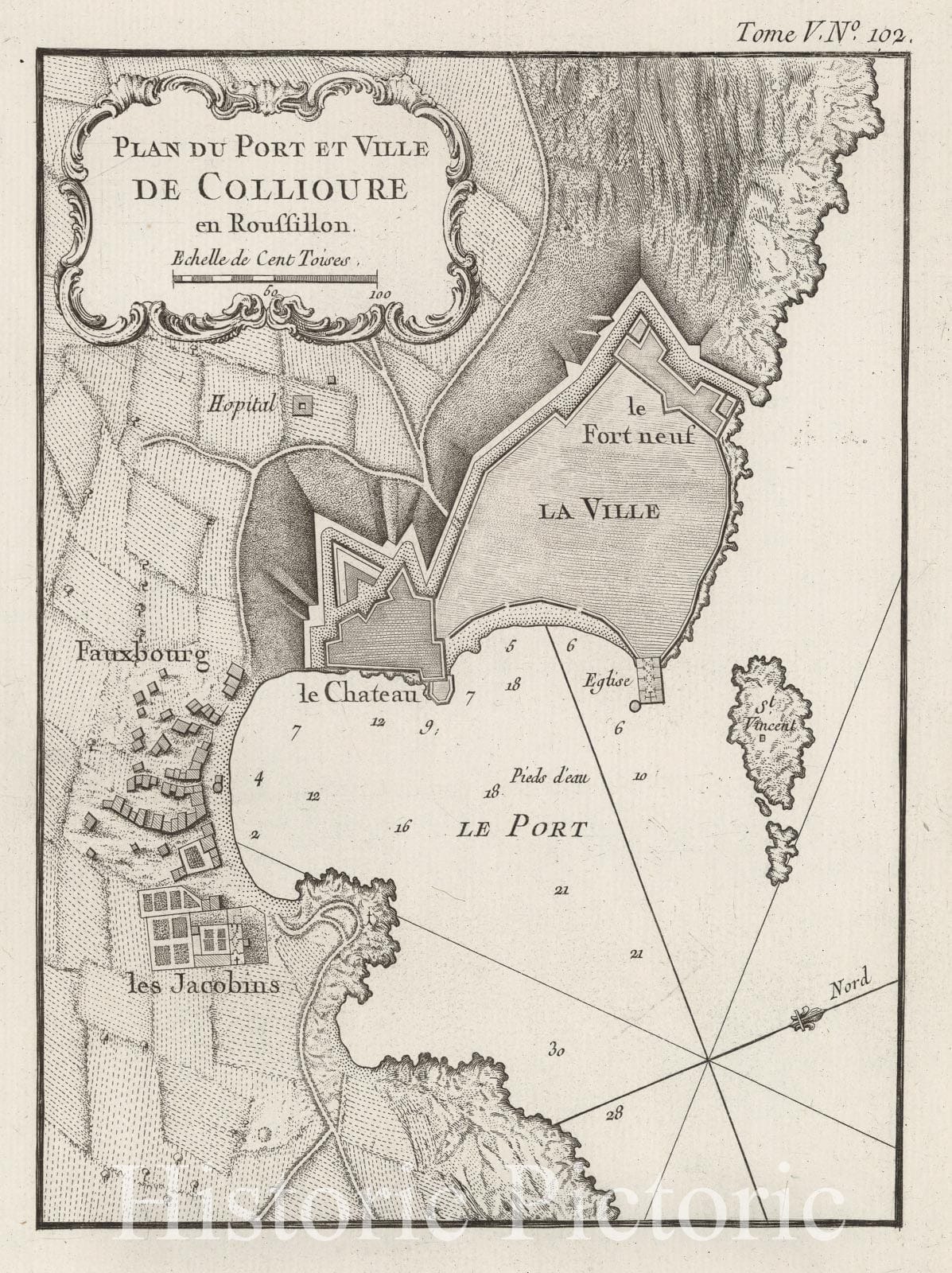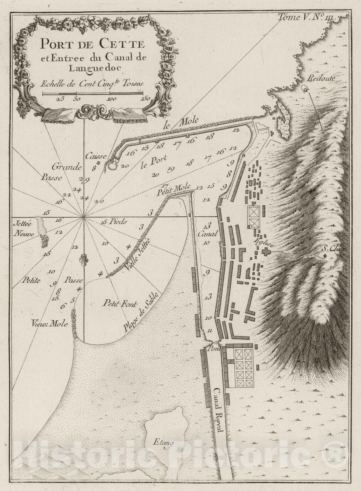 • .Historic Map : France , Cette France, Languedoc 1764 Port de Cette et entree du canal de Languedoc. , Vintage Wall Art