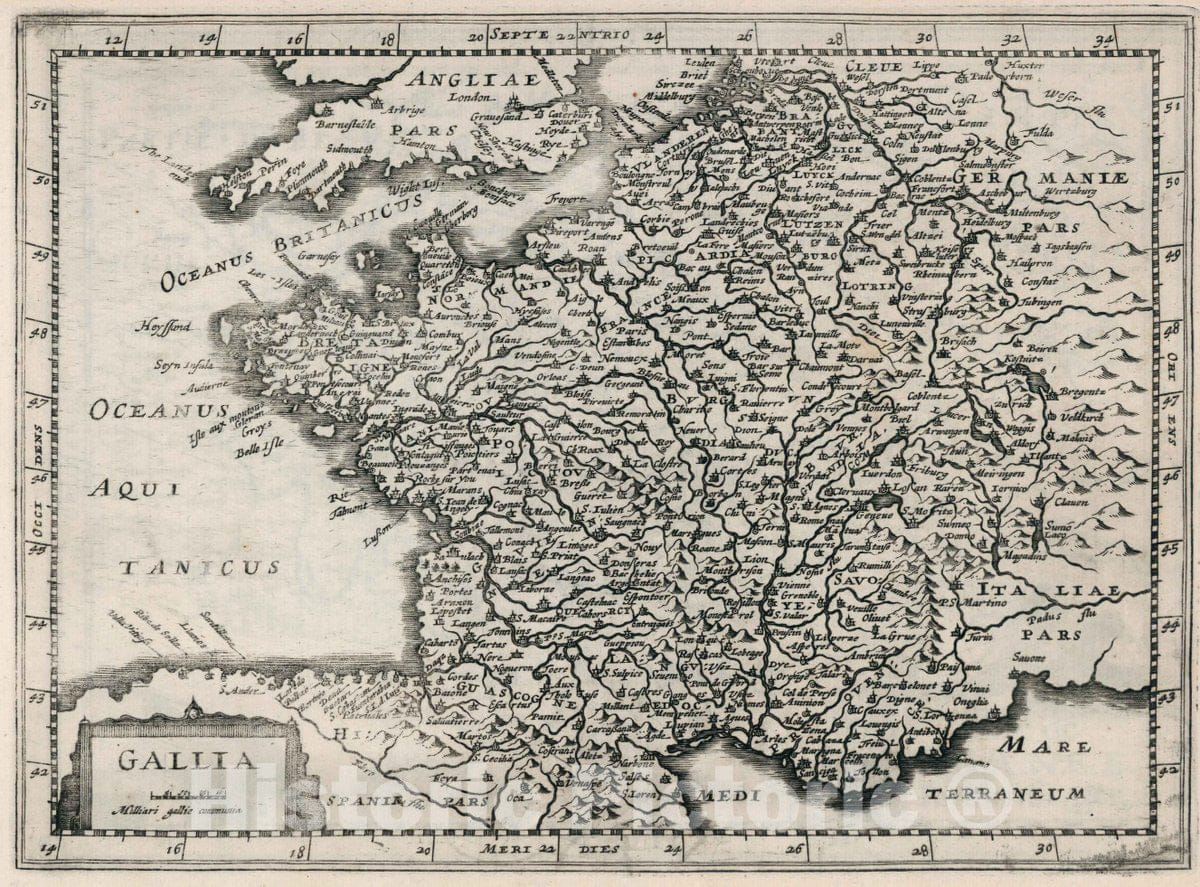 Historic Map : France, Gallia. Atlas sive Cosmographicae Meditationes de Fabrica Mundi et fabricati Figura, 1636 Atlas , Vintage Wall Art