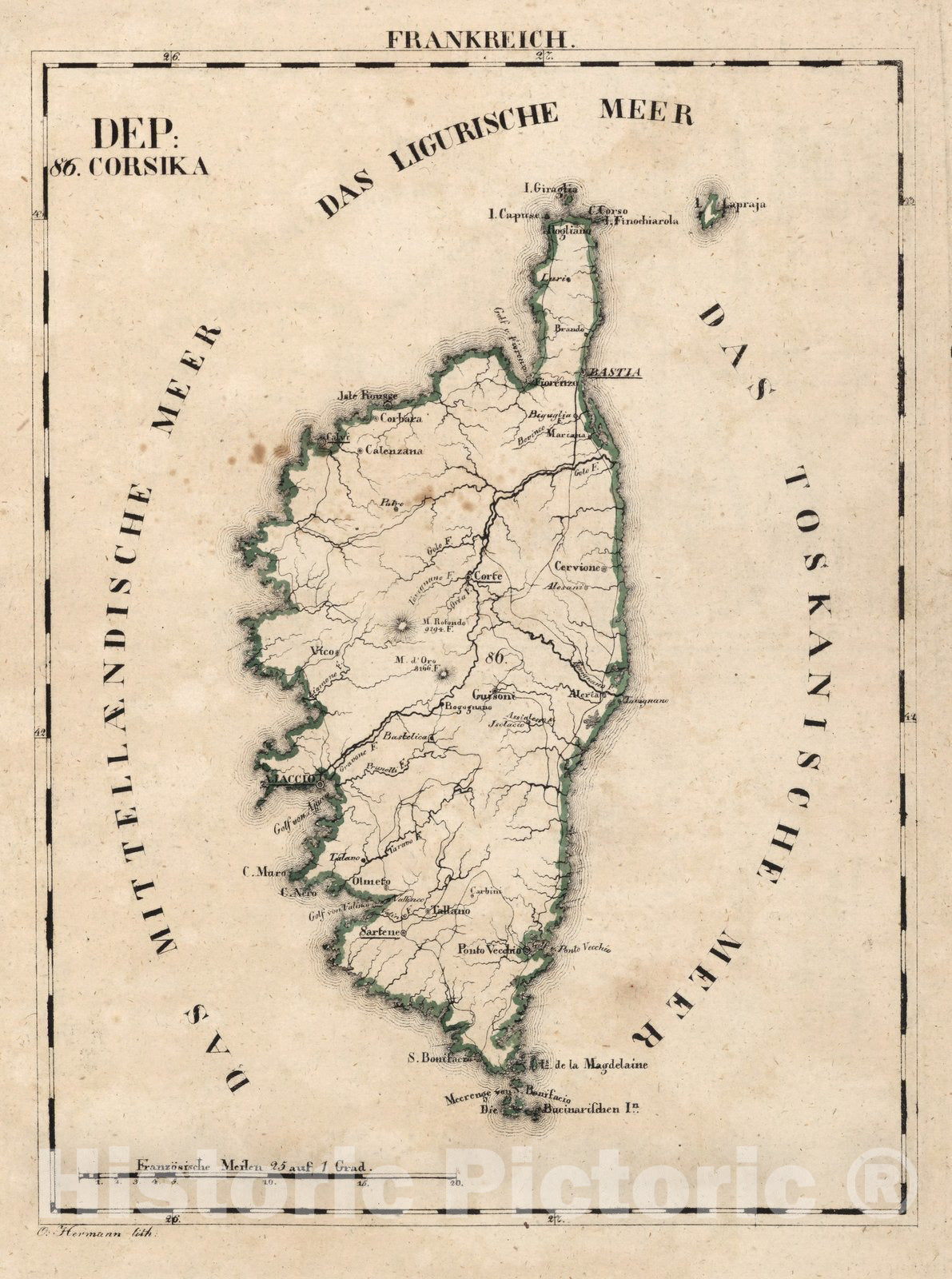 • .Historic Map : France, National Atlas Map, V.1:1-5: I: Frankreich. DEP: 86. Korsika 1825 , Vintage Wall Art