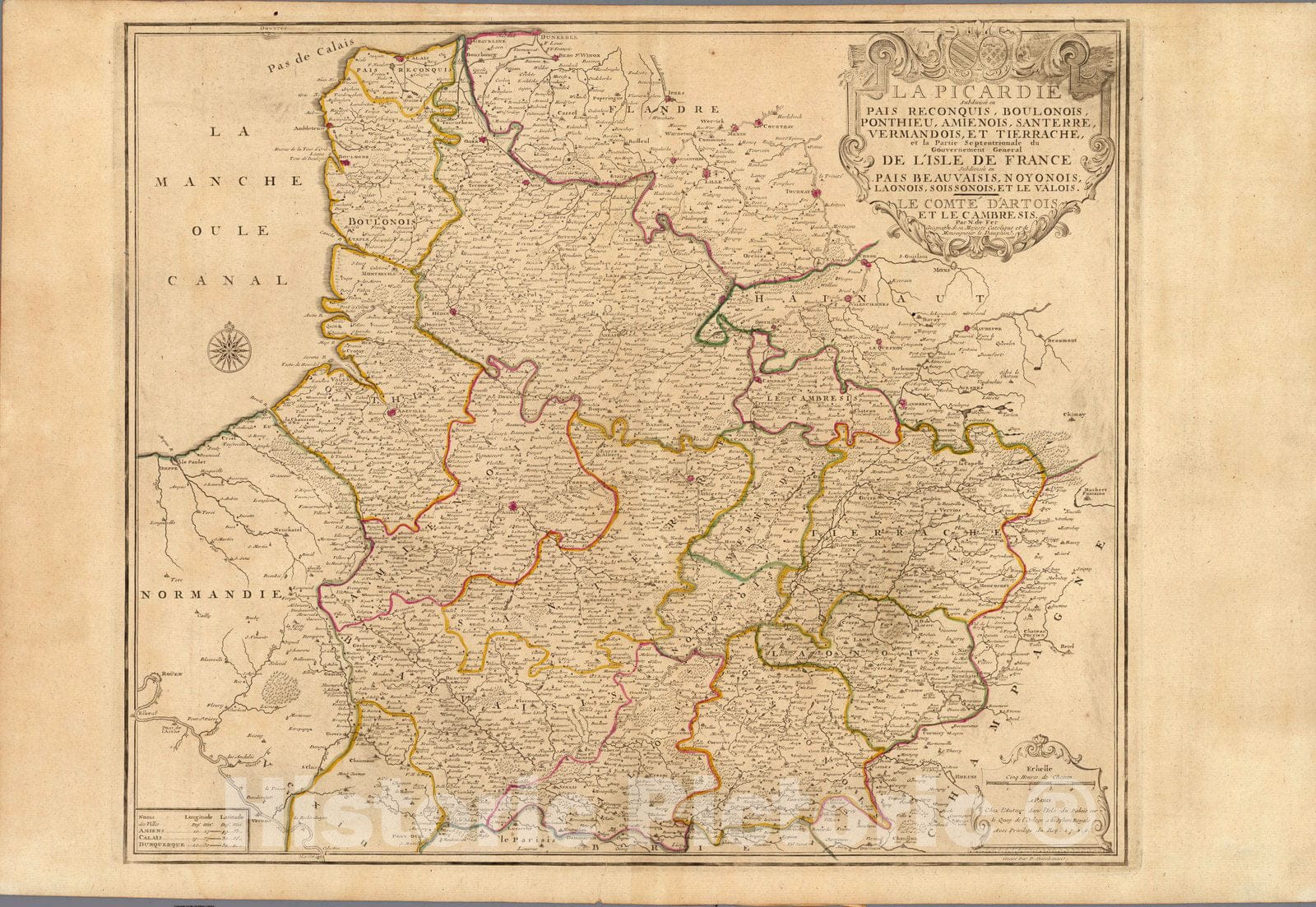 • .Historic Map : France, Picardie, FranceLa Picardie subdivisee en Pais Reconquis, Boulonois, 1719 , Vintage Wall Art
