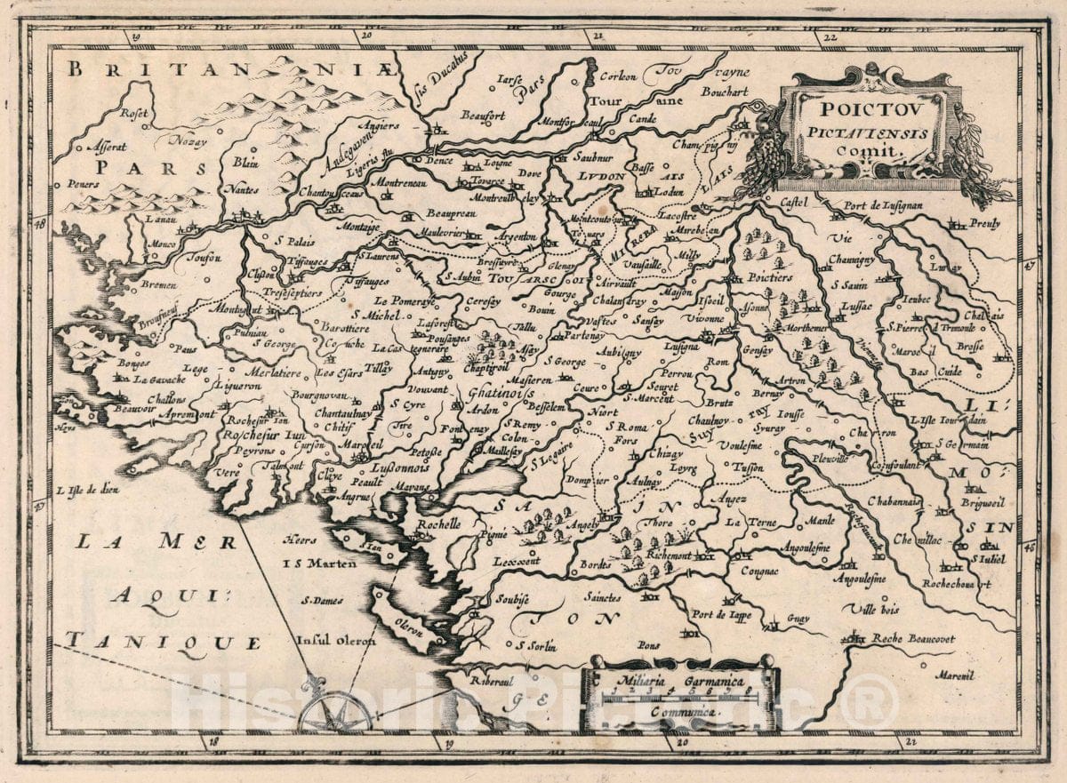 • Historic Map : France, Poictov Pictaviensis Comit, 1636 Atlas , Vintage Wall Art
