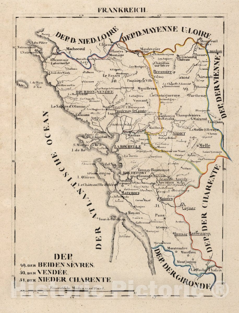 Frankreich. DEP: 49. Der Beiden Sevres. 50. Der Vendee. 51. Der Nieder Charente. (to accompany) Atlas von Europa nebst den Kolonien : bearbeitet von W. E. A. v. Schlieben ... Leipzig bei Georg Joachim Goschen 1825. | Atlas von Europa nebst den Kolonien : fur Geschaftsmanner, Zeitungsleser und Besitzer des Conversations-Lexicons in einer Folge von Charten und einem alphabetisch eingerichteten Texte : bearbeitet von W. E. A. v. Schlieben ... Leipzig bei Georg Joachim Goschen 1825. O. Hermann, Lith. | Publisher:Georg Joachim Goschen