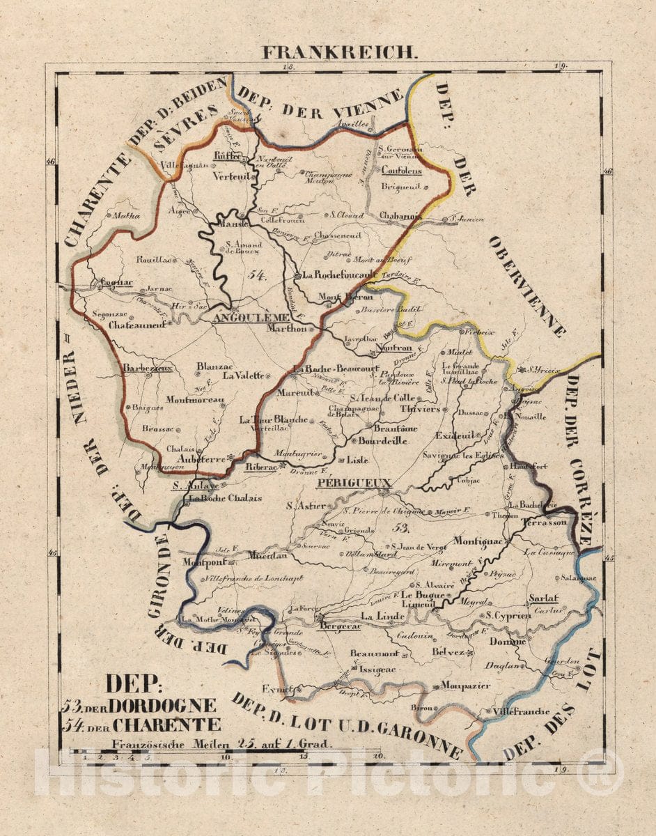 Frankreich. DEP: 53. Der Dordogne. 54. Der Charente. (to accompany) Atlas von Europa nebst den Kolonien : bearbeitet von W. E. A. v. Schlieben ... Leipzig bei Georg Joachim Goschen 1825. | Atlas von Europa nebst den Kolonien : fur Geschaftsmanner, Zeitungsleser und Besitzer des Conversations-Lexicons in einer Folge von Charten und einem alphabetisch eingerichteten Texte : bearbeitet von W. E. A. v. Schlieben ... Leipzig bei Georg Joachim Goschen 1825. O. Hermann, Lith. | Publisher:Georg Joachim Goschen