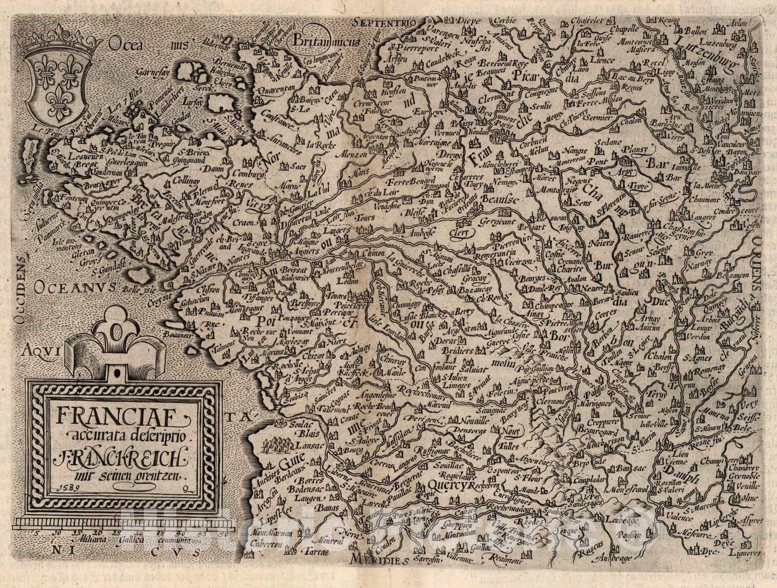 • .Historic Map : France,57. Franciae accurata descriptio. 1600 , Vintage Wall Art