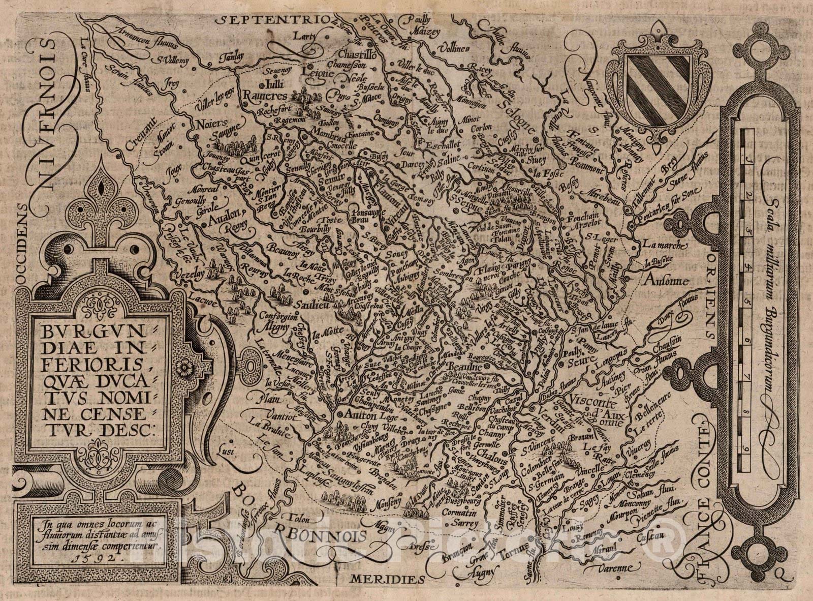 Historic Map : France,60. Burgundiae (Burgundy) inferiorus. 1600 , Vintage Wall Art