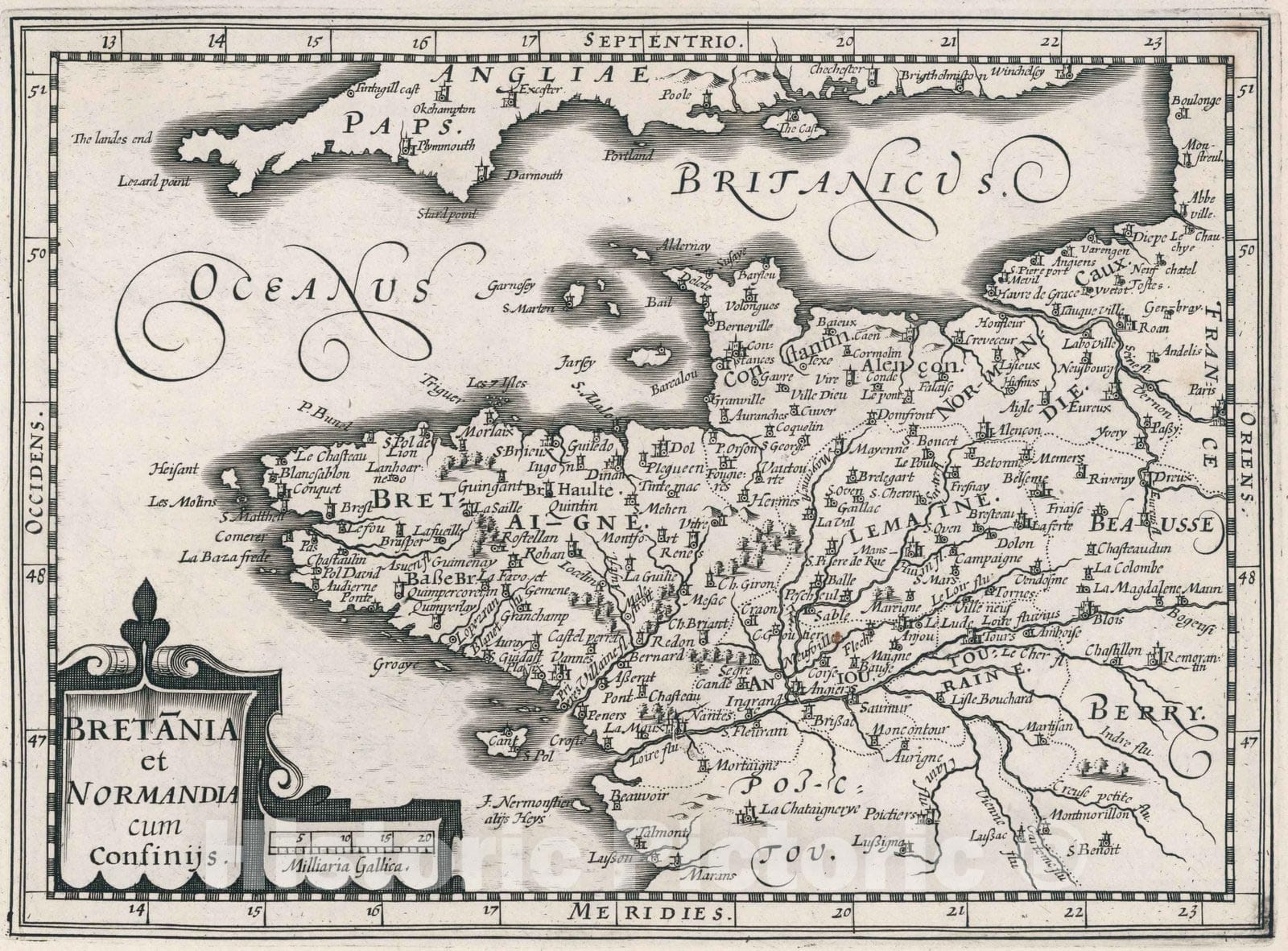 Historic Map : France,Bretania et Normandia cum consiniis 1636 , Vintage Wall Art