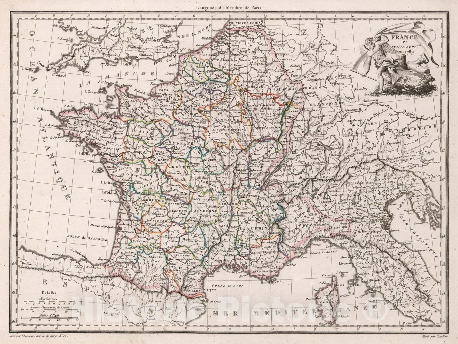 Historic Map : France,France et l'Italie Septale. en 1789. 1812 , Vintage Wall Art