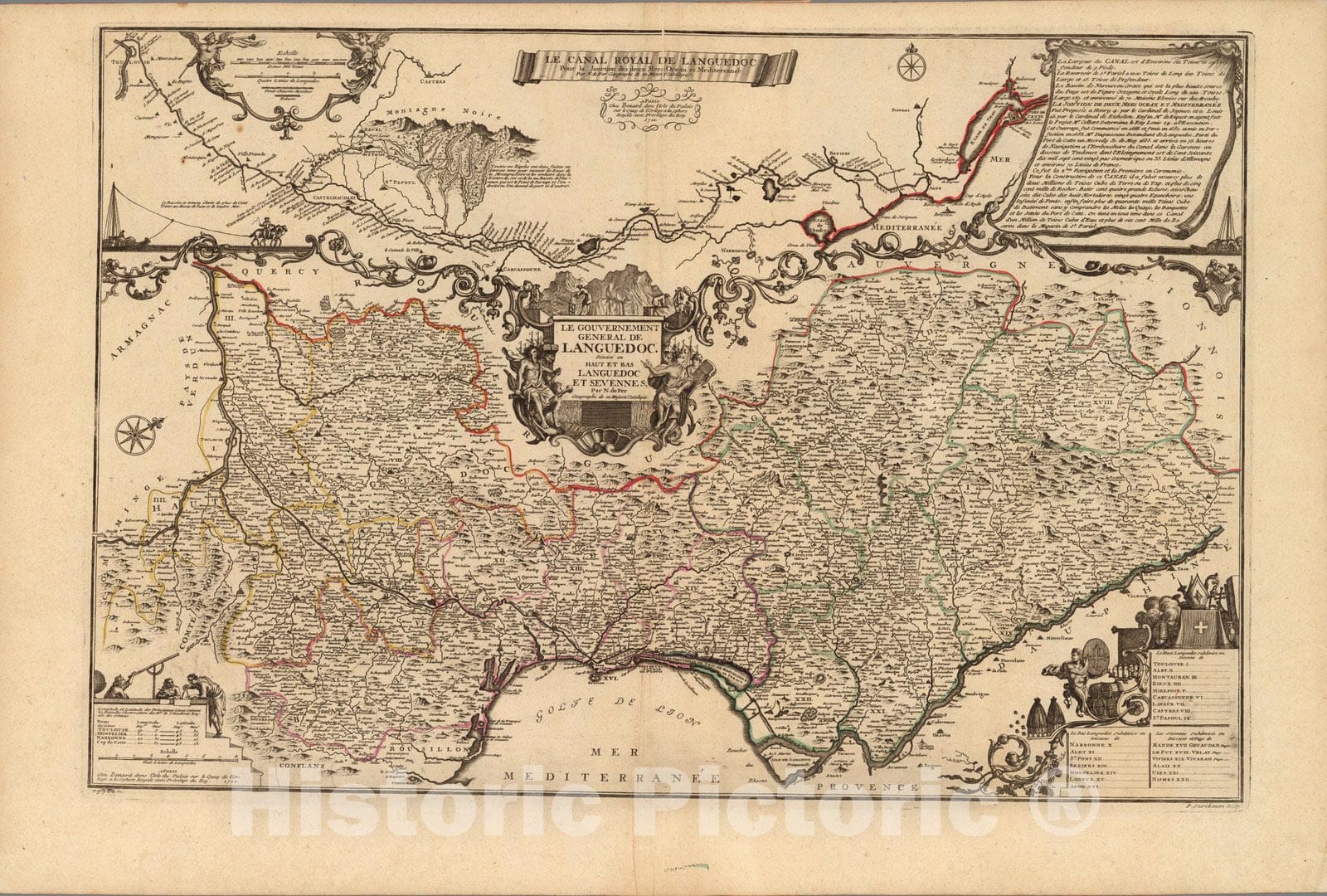 Historic Map : France,Le Gouvernement General De Languedoc. (Inset: Le Canal Royal De Languedoc.) 1712 , Vintage Wall Art