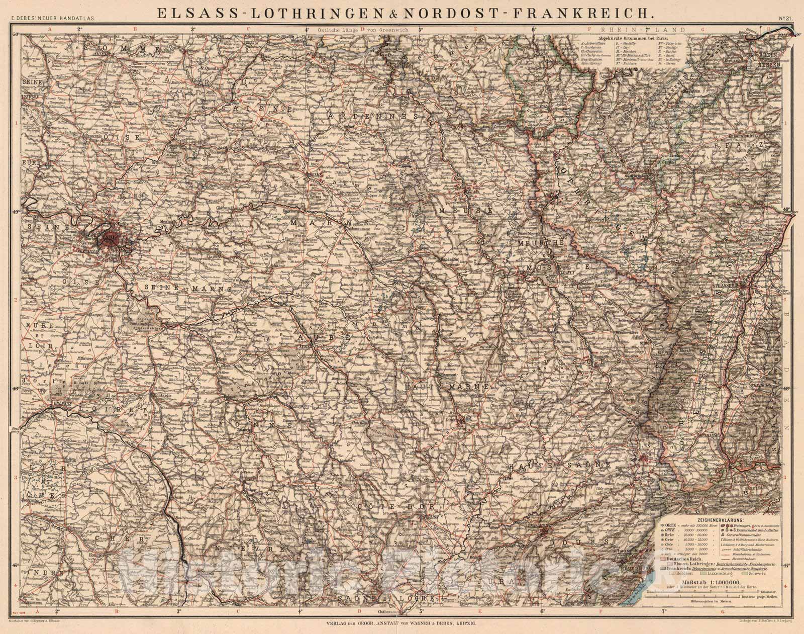Historic Map : France,No. 21. Elsass - Lothringen und Nordost - Frankreich 1899 , Vintage Wall Art