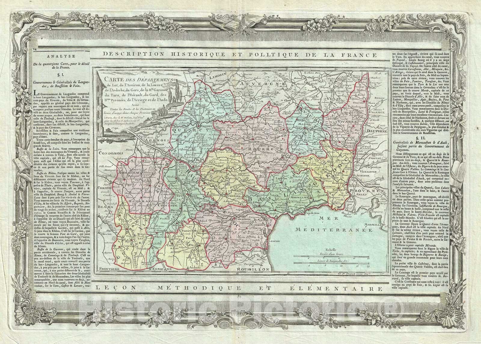 Historic Map : Languedoc and Midi-Pyrennes Regions of France, Desnos, 1786, Vintage Wall Art