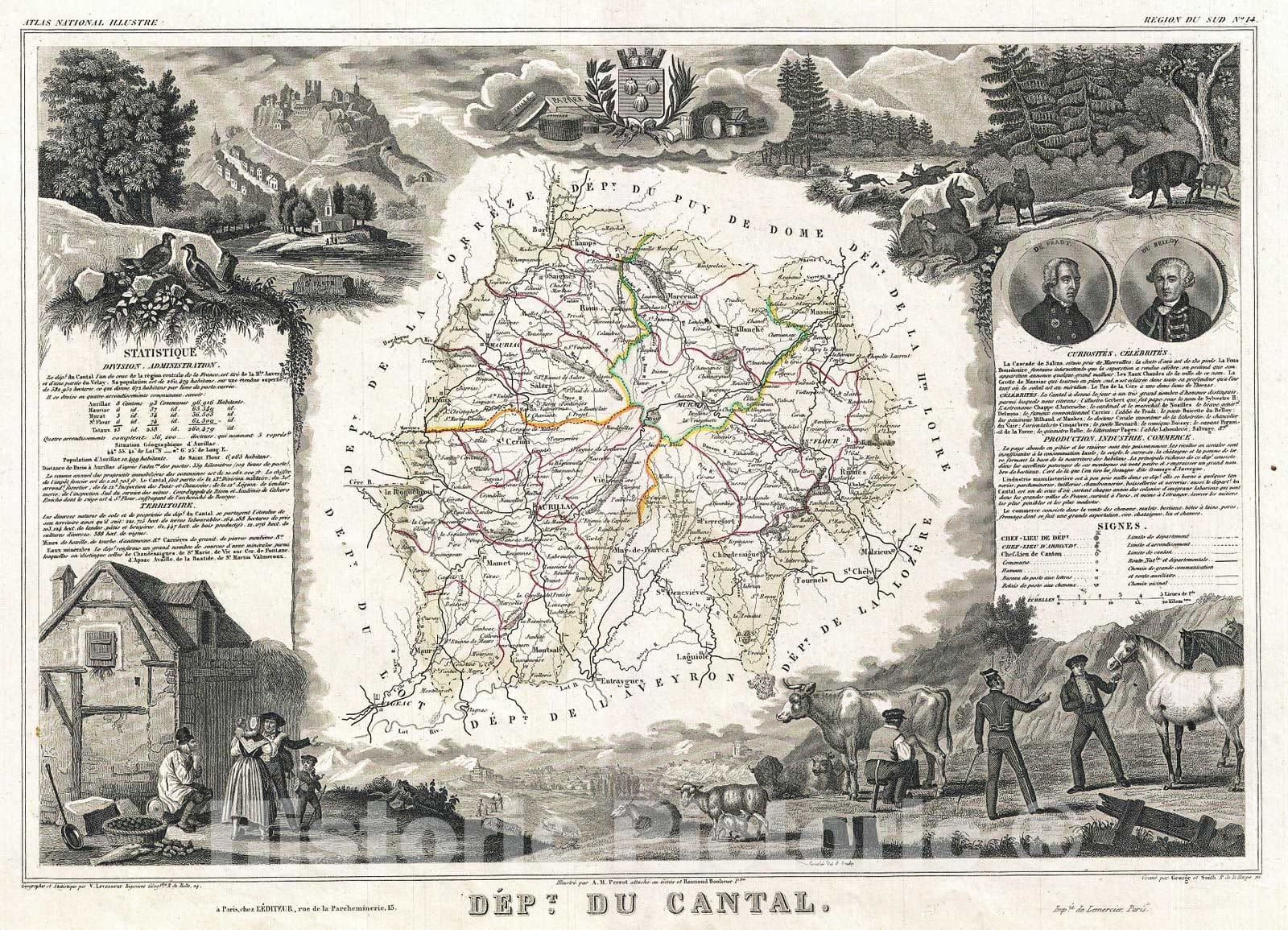 Historic Map : Levasseur Map of The Department Du Cantal, France (Cantal Cheese Region), 1852, Vintage Wall Art