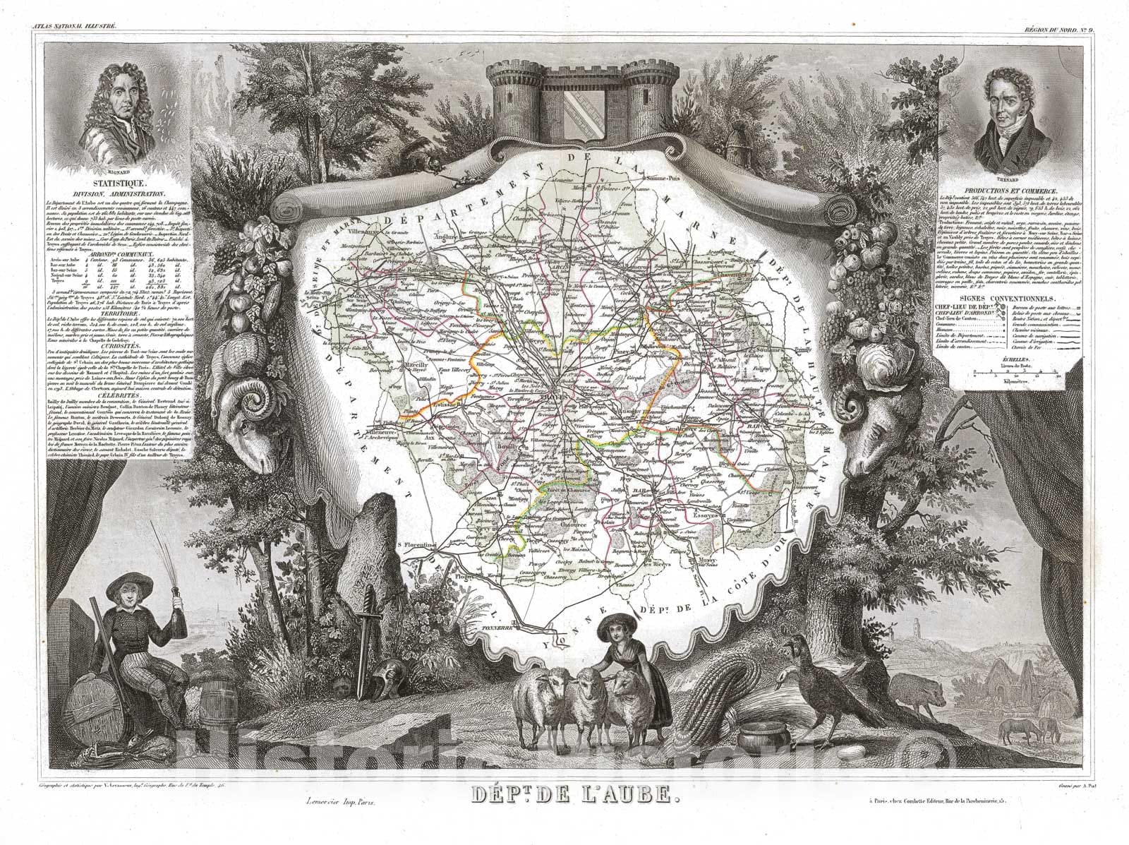 Historic Map : Levasseur Map of The Department L'Aube, France (Chaource Cheese Region), 1852, Vintage Wall Art