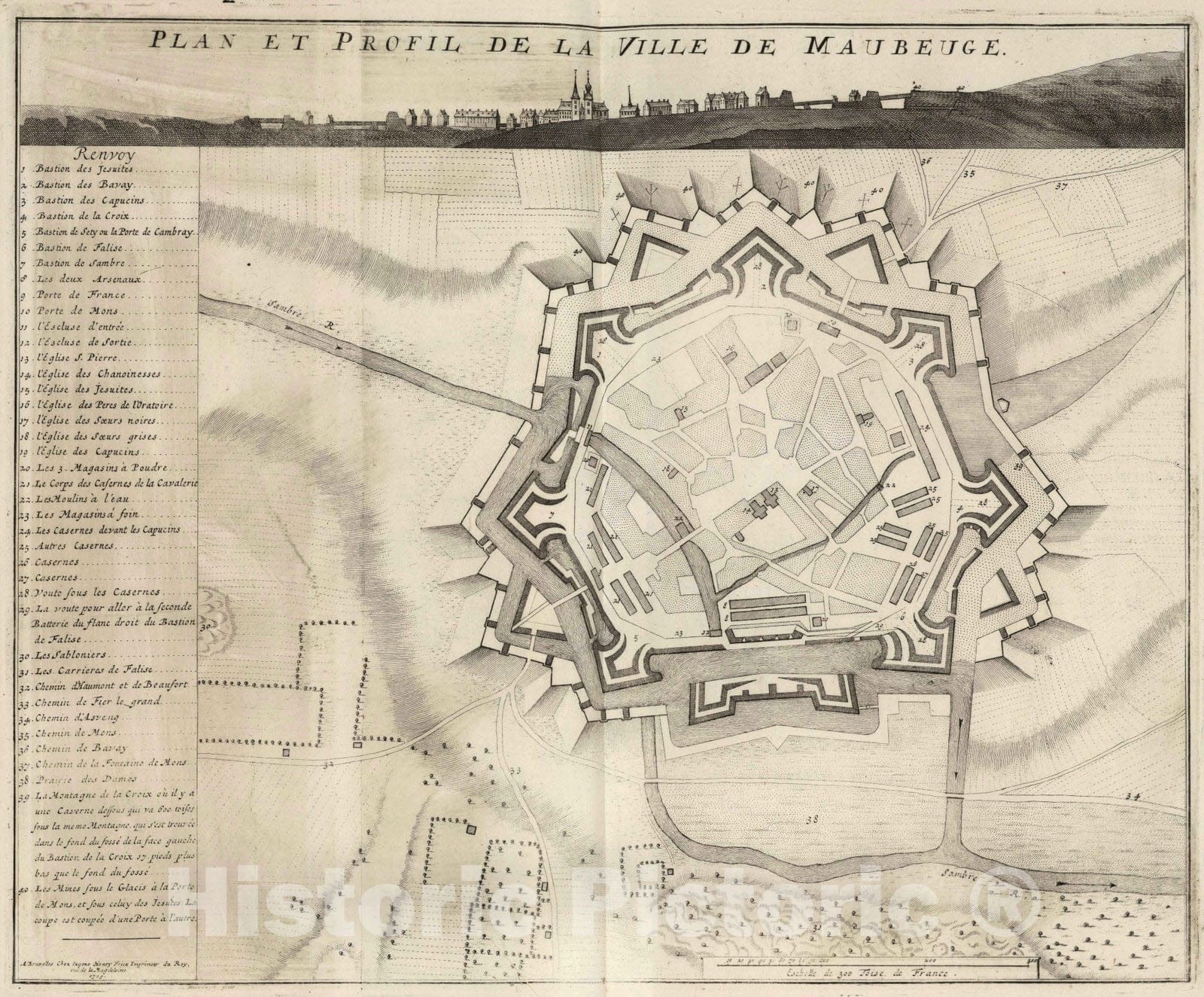 Historic Map : Maubeuge , France, 1709 65. Plan et Profil de la Ville de Maubeuge, France. 1709. , Vintage Wall Art