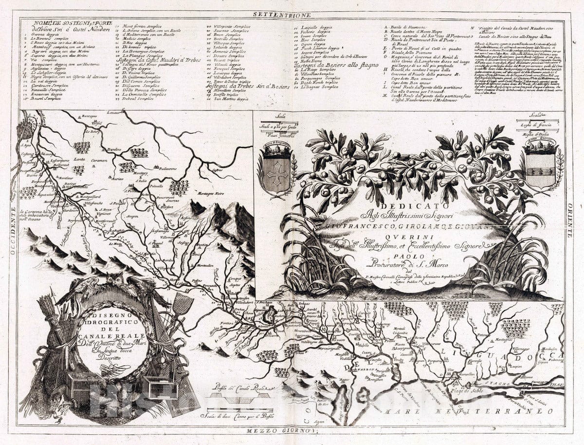 Historic Map : Midi Canal , France 1693 Disegno Idrografico del Canal Reale. , Vintage Wall Art