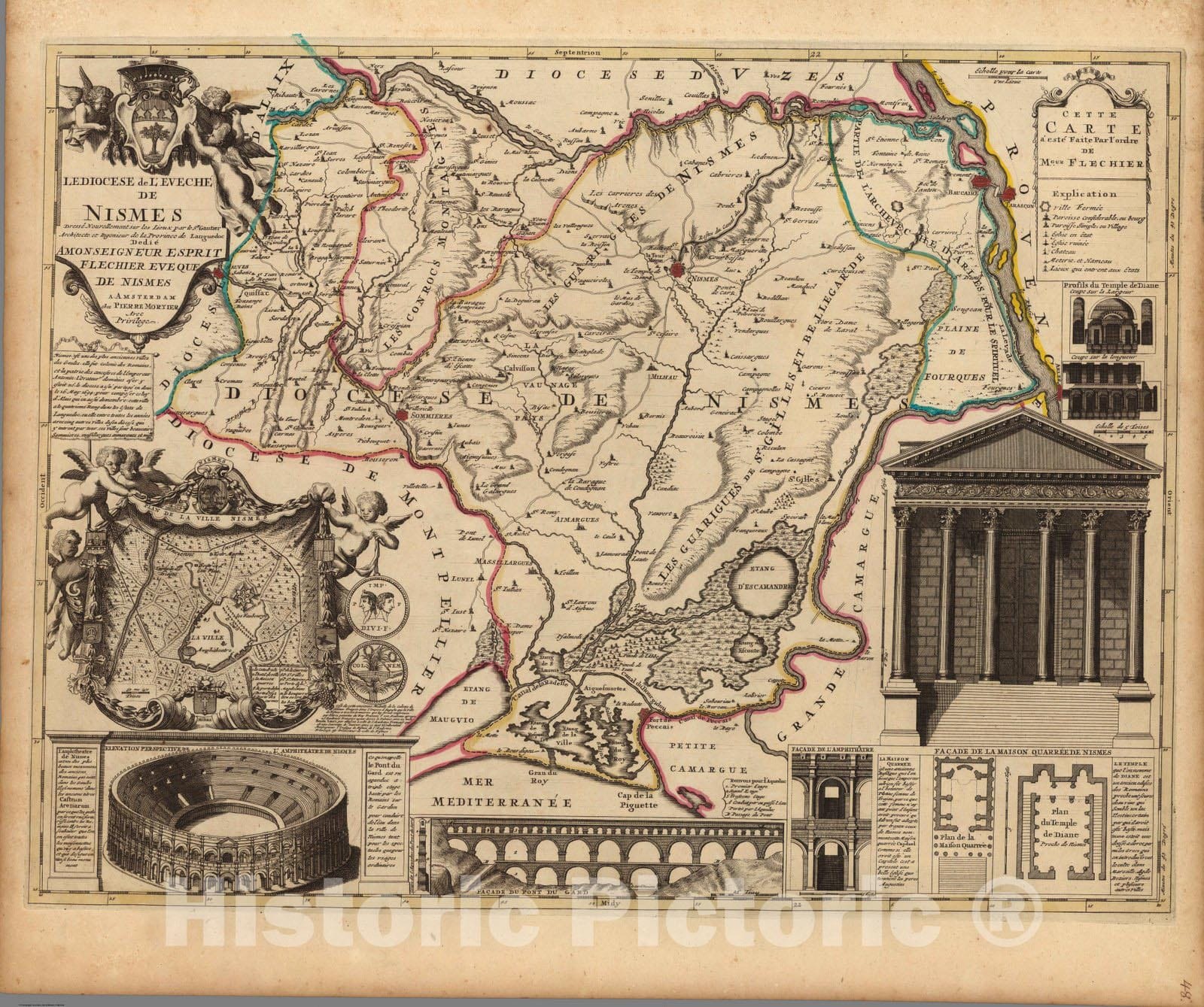 • Historic Map : Nimes , FranceLe Diocese de l'Eveche de Nismes. 1708 , Vintage Wall Art